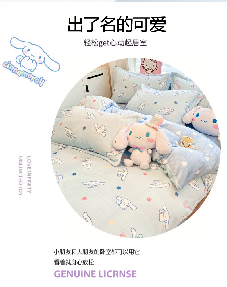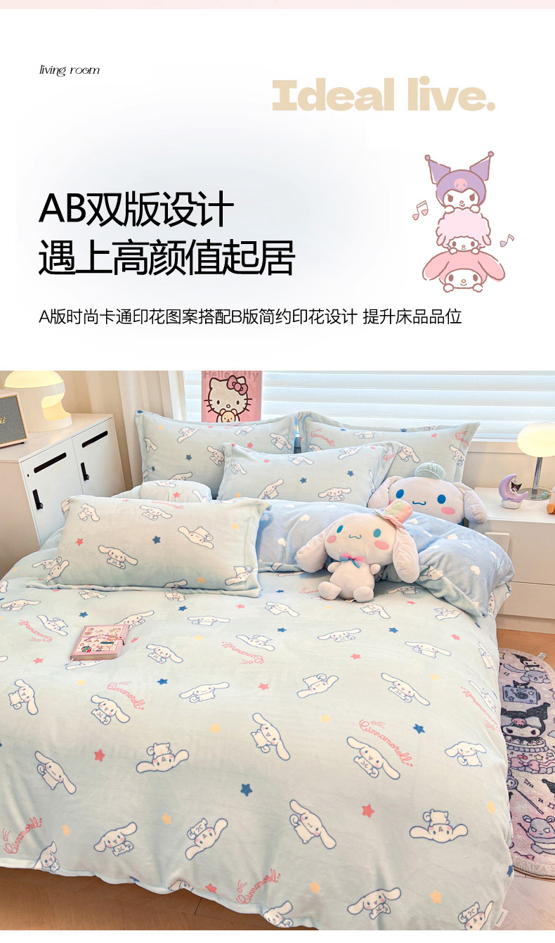 当前位置: 91家纺网 > 商品网购 > 床品套件 > 四件套 > 牛奶绒四件套 > 暮思家居 2025新款三丽鸥正版授权高克重200克加厚保暖卡通牛奶绒四件套 牛奶绒-星星玉桂狗