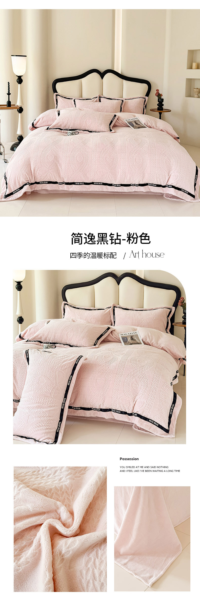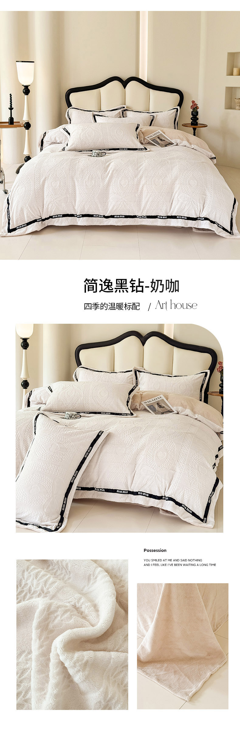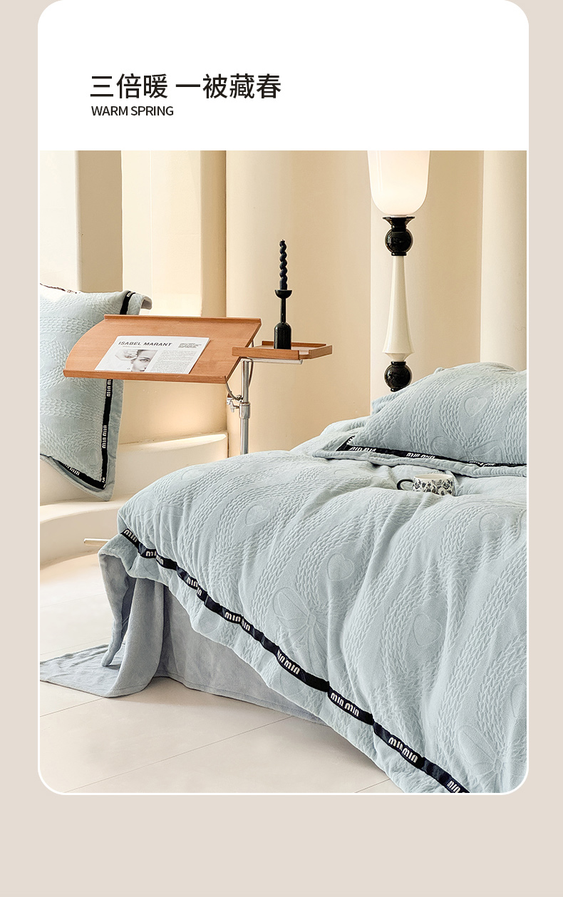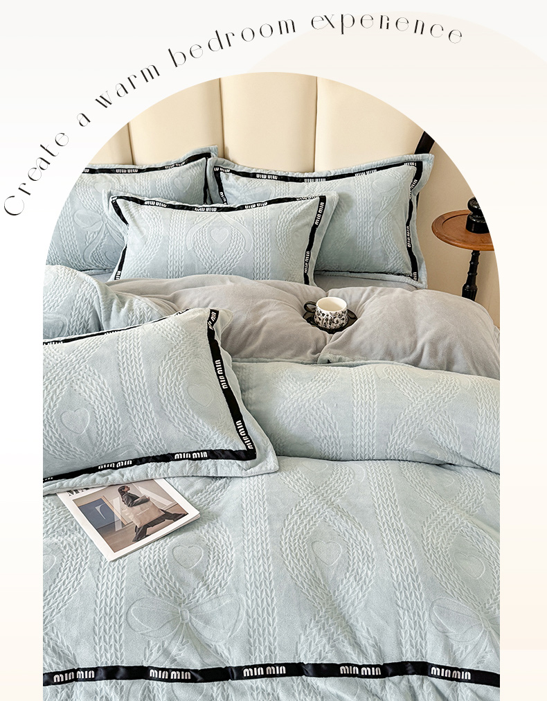 当前位置: 91家纺网 > 商品网购 > 床品套件 > 四件套 > 牛奶绒四件套 > 潮邦创意家居 2025新款冬季雕花牛奶绒四件套-简逸黑钻 简逸黑钻-浅蓝