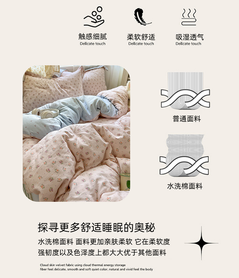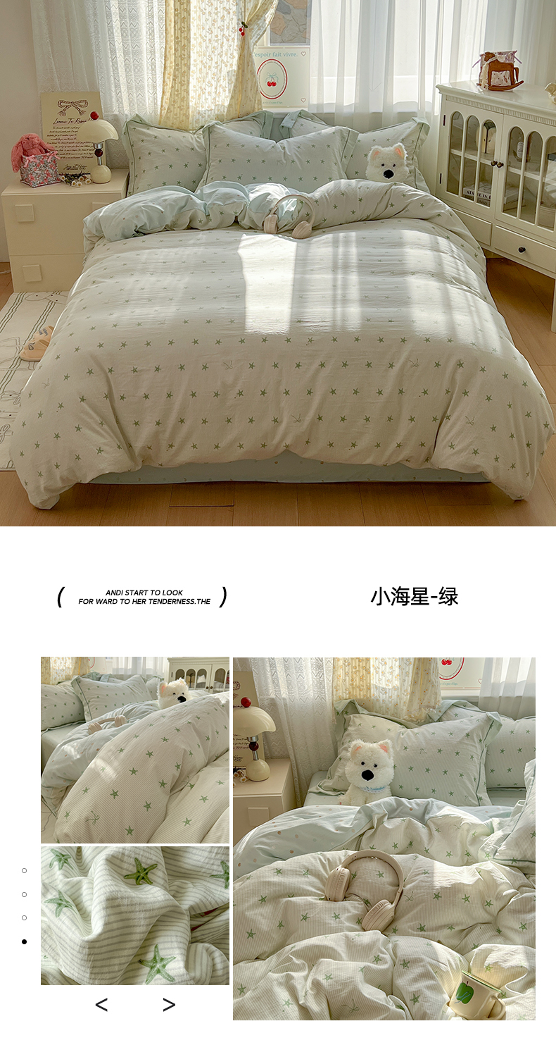 当前位置: 91家纺网 > 商品网购 > 床品套件 > 四件套 > 水洗棉四件套 > 亨通家纺 2025新款爆款韩国小布袋古法水洗棉云感棉四件套【提供买家秀】 小苍兰-玉