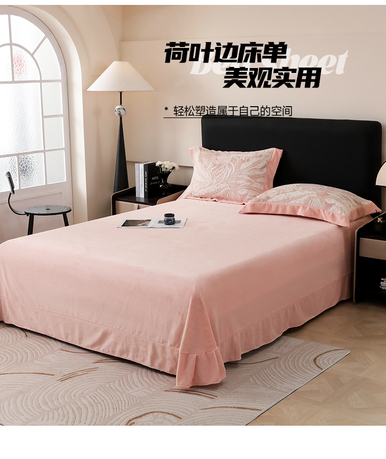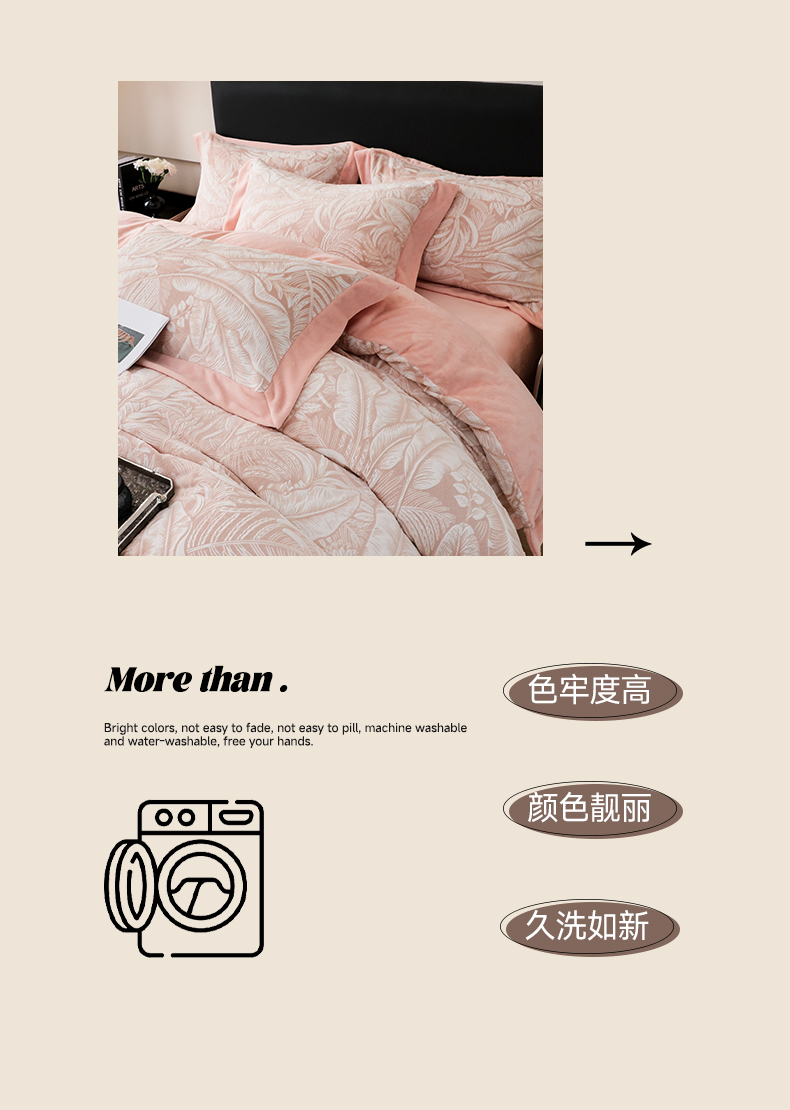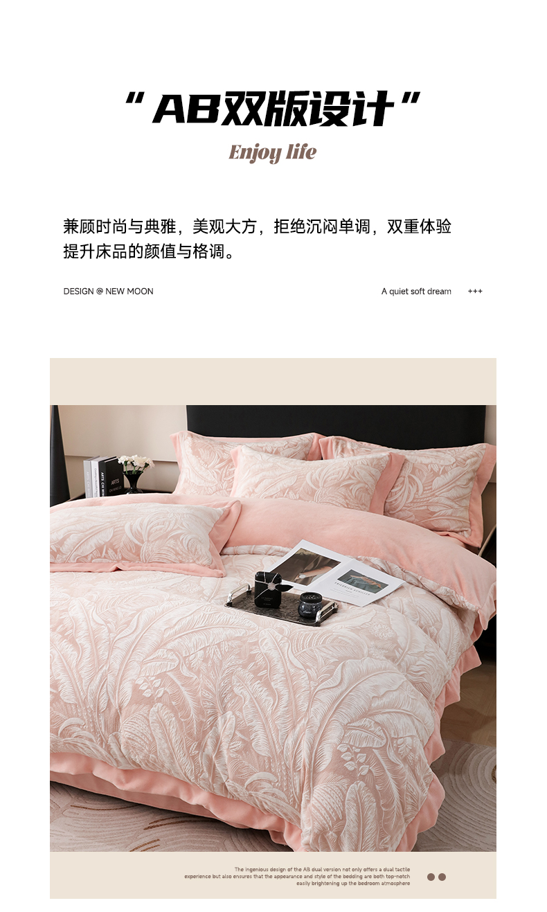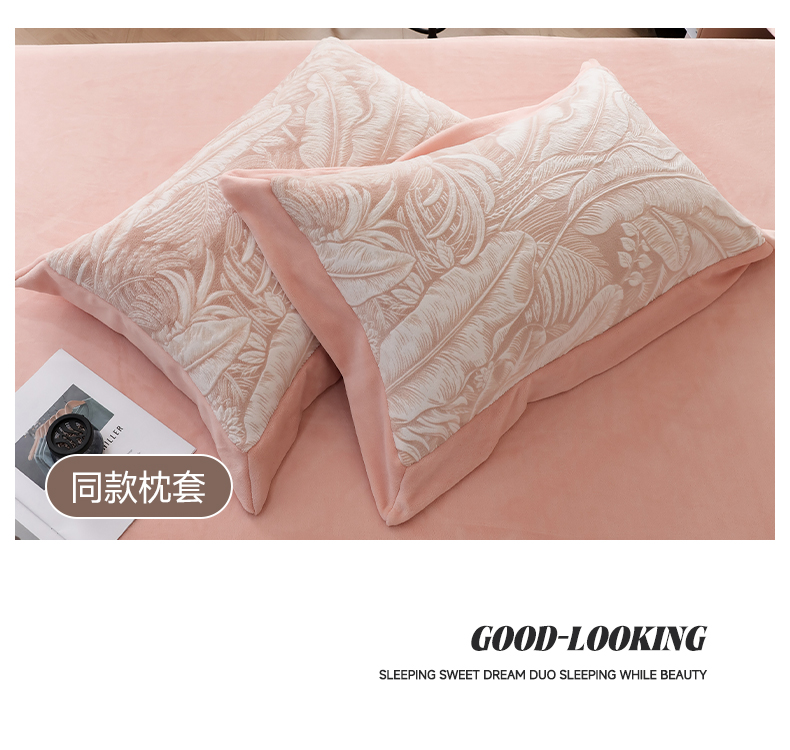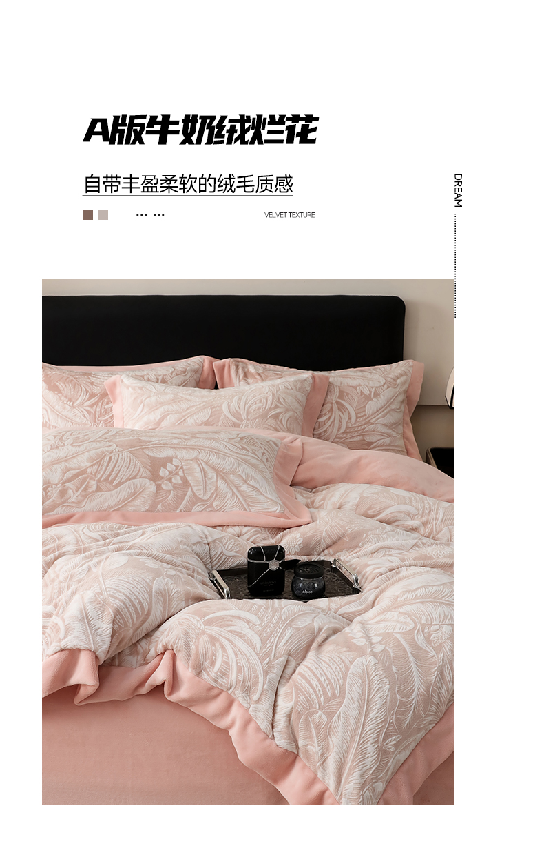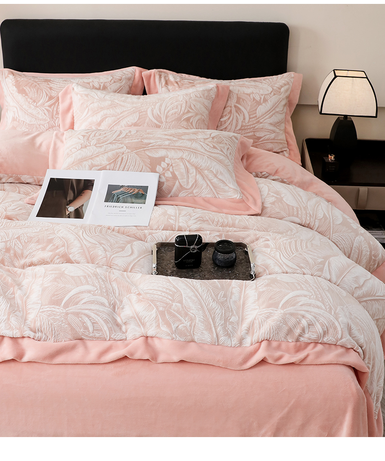 商品名称:千姿坊 2025新款冬季雕花牛奶绒加厚保暖四件套复古风轻奢烂花床单被套床上用品 一叶倾城-粉