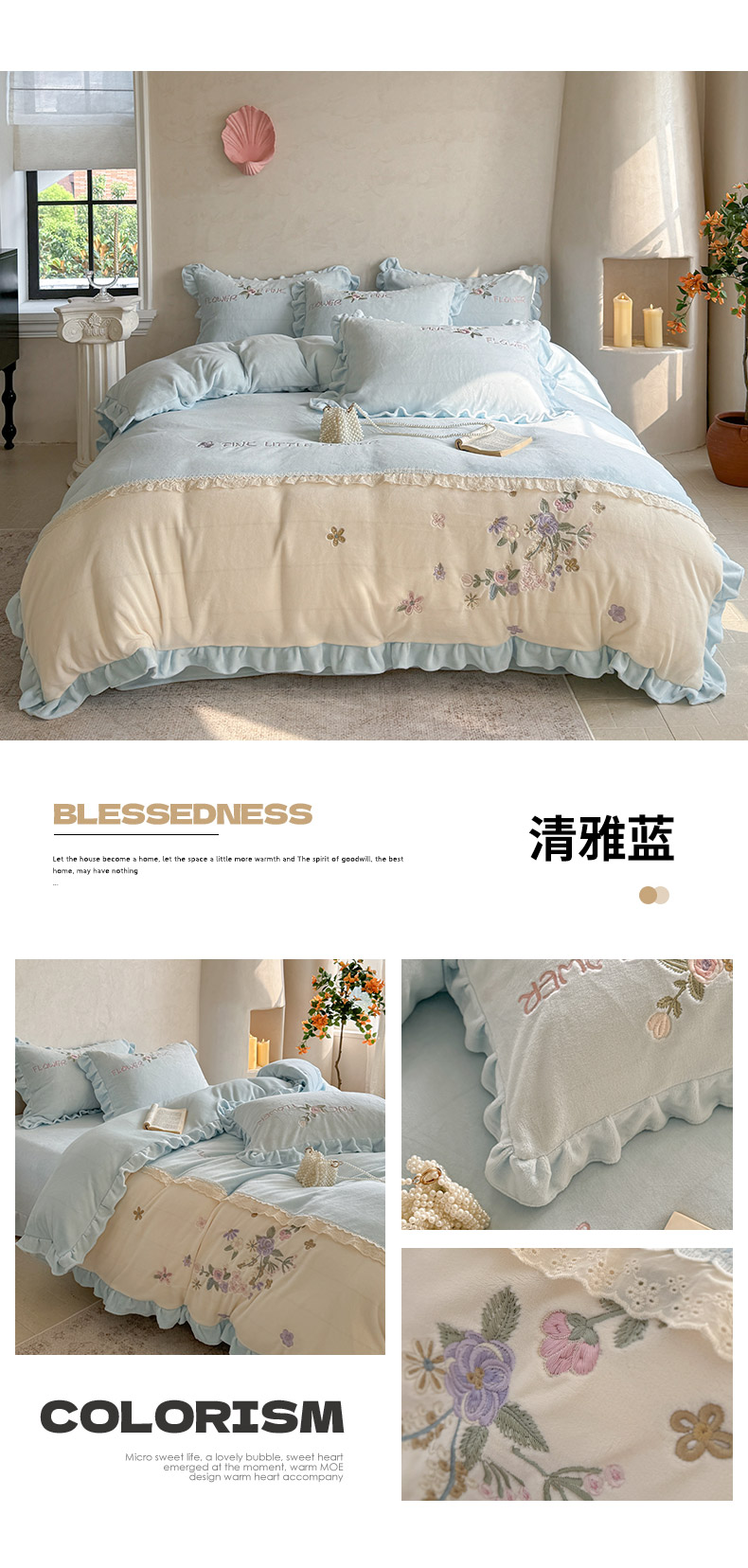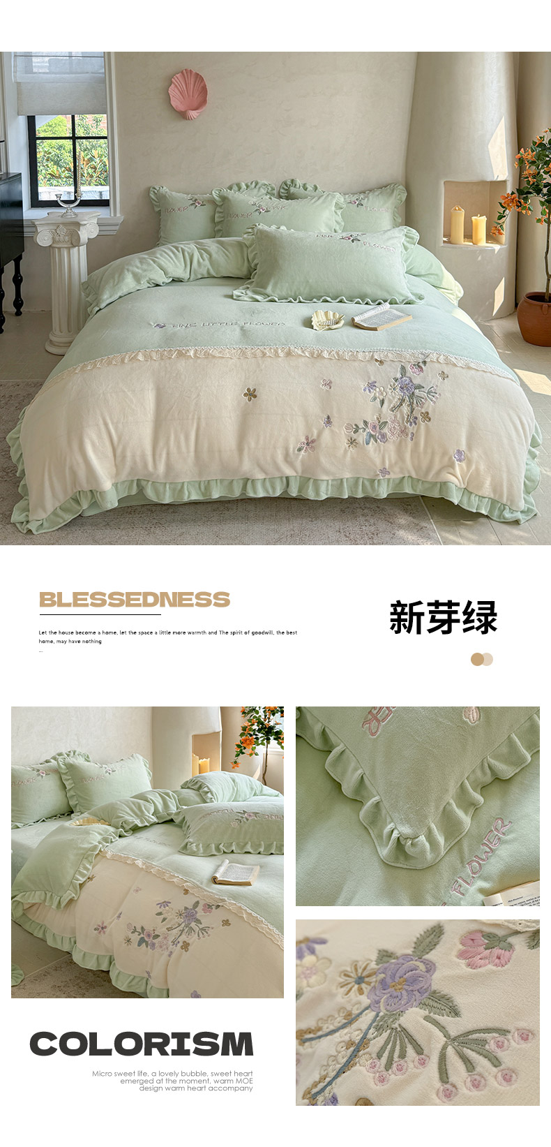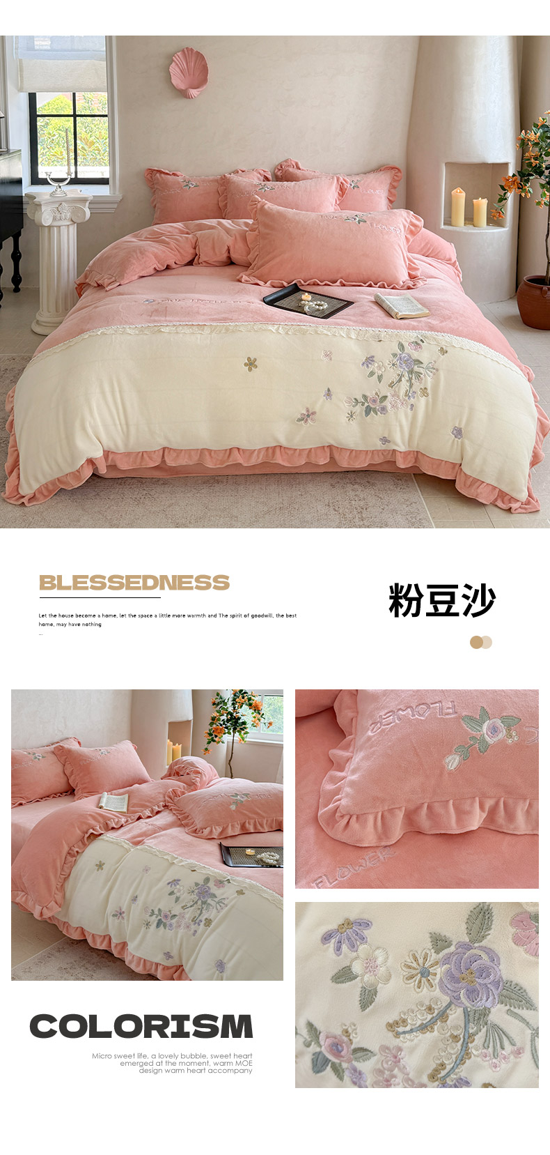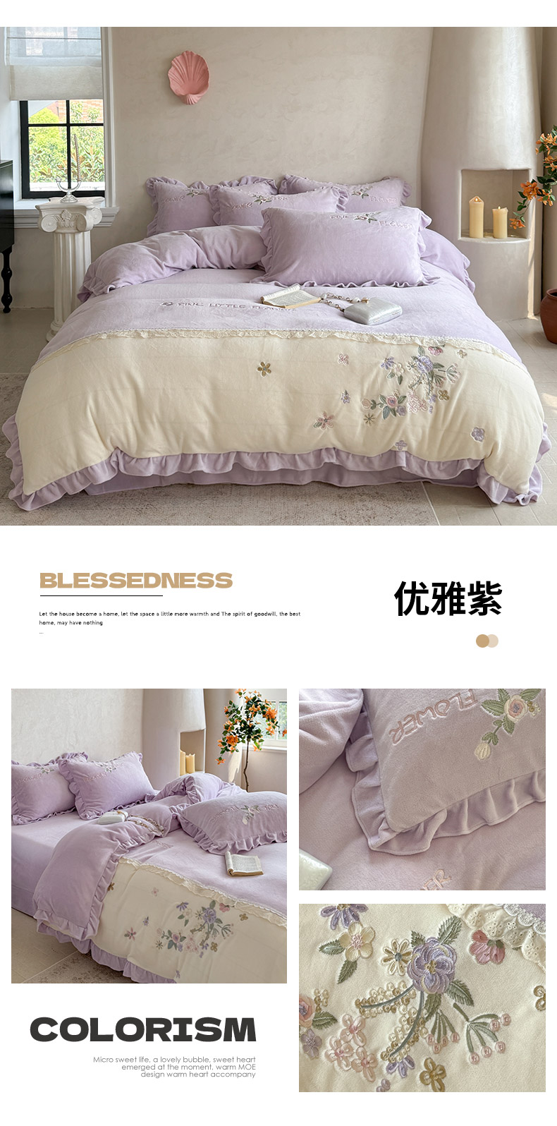 (总)可以家居 2025新款高克重全消光超细旦奶芙云绒四件套-玛利亚系列-莫妮卡,莫妮卡粉豆沙,莫妮卡清雅蓝,莫妮卡新芽绿,莫妮卡优雅紫,莫妮卡贵族粉