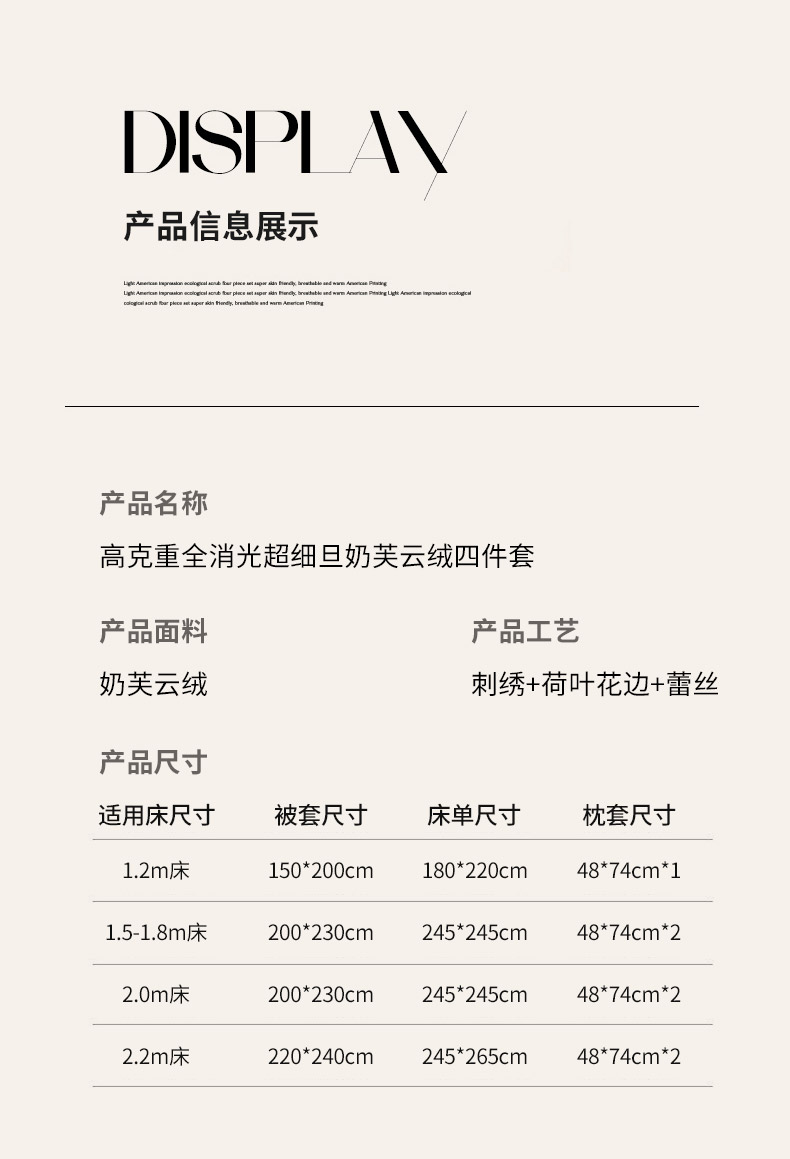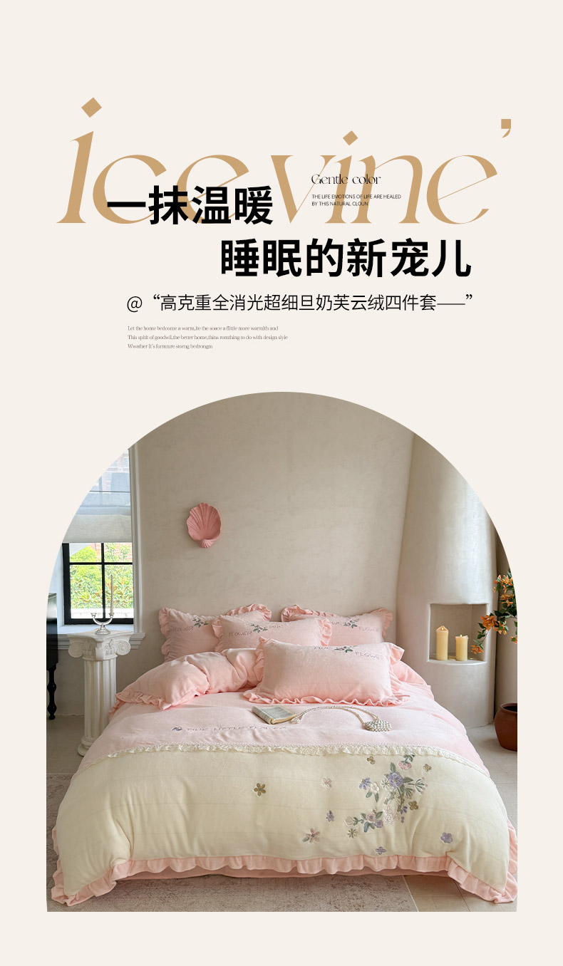 商品名称:(总)可以家居 2025新款高克重全消光超细旦奶芙云绒四件套-玛利亚系列