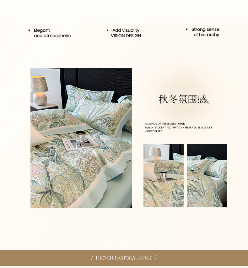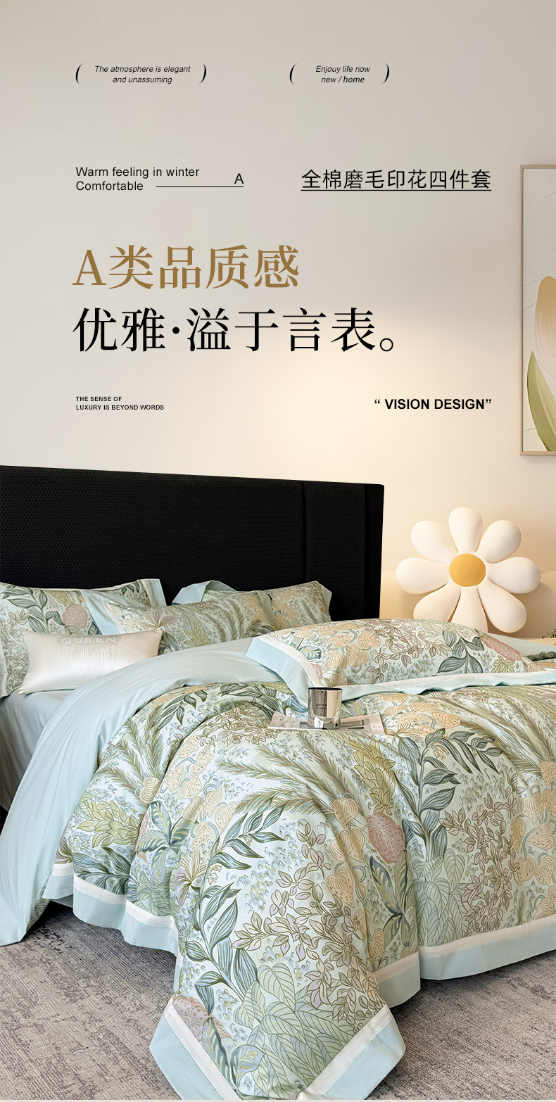 商品名称: 2025直播爆款A类加厚保暖全棉磨毛四件套纯棉数码印花被套高端床单床笠款裸睡床上用品 芙瑶-香颂绿