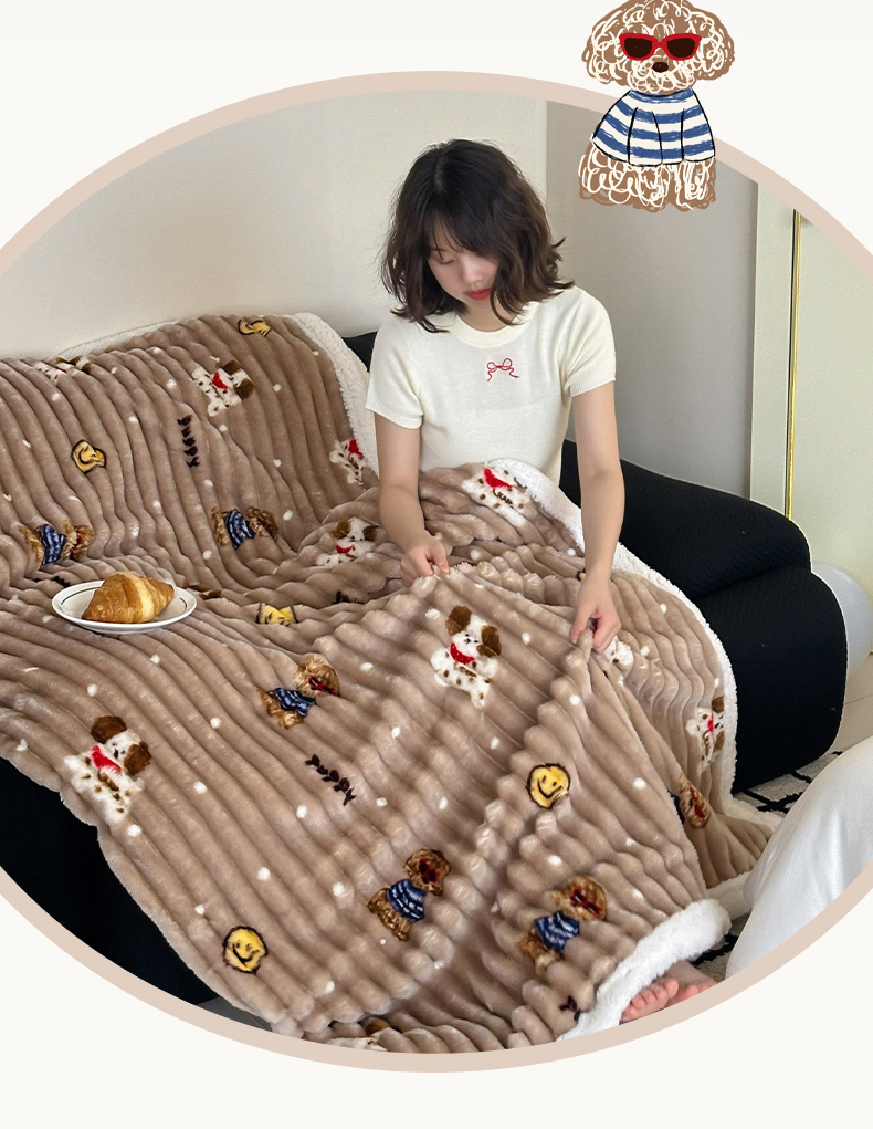 RYB红黄兰 2025新款设计师原创抽条280g兔兔绒羊羔绒加厚毛毯 组合图