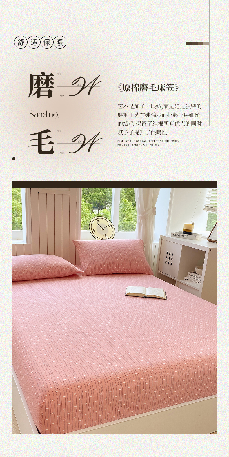 春皖家纺 2025新款原棉磨毛单床笠 床笠单件-风格一 梦妮粉