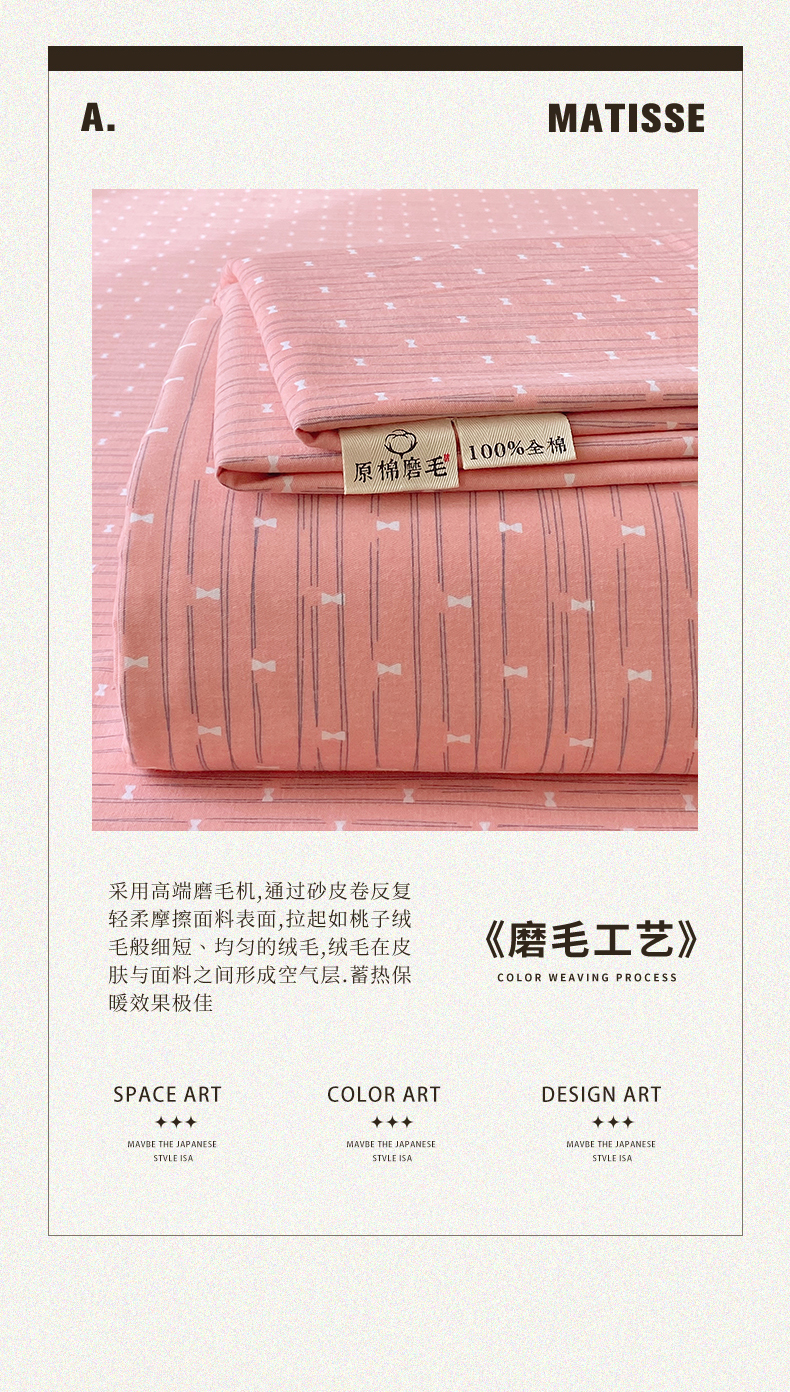 商品名称:春皖家纺 2025新款原棉磨毛单床笠 床笠单件-风格一 梦妮粉