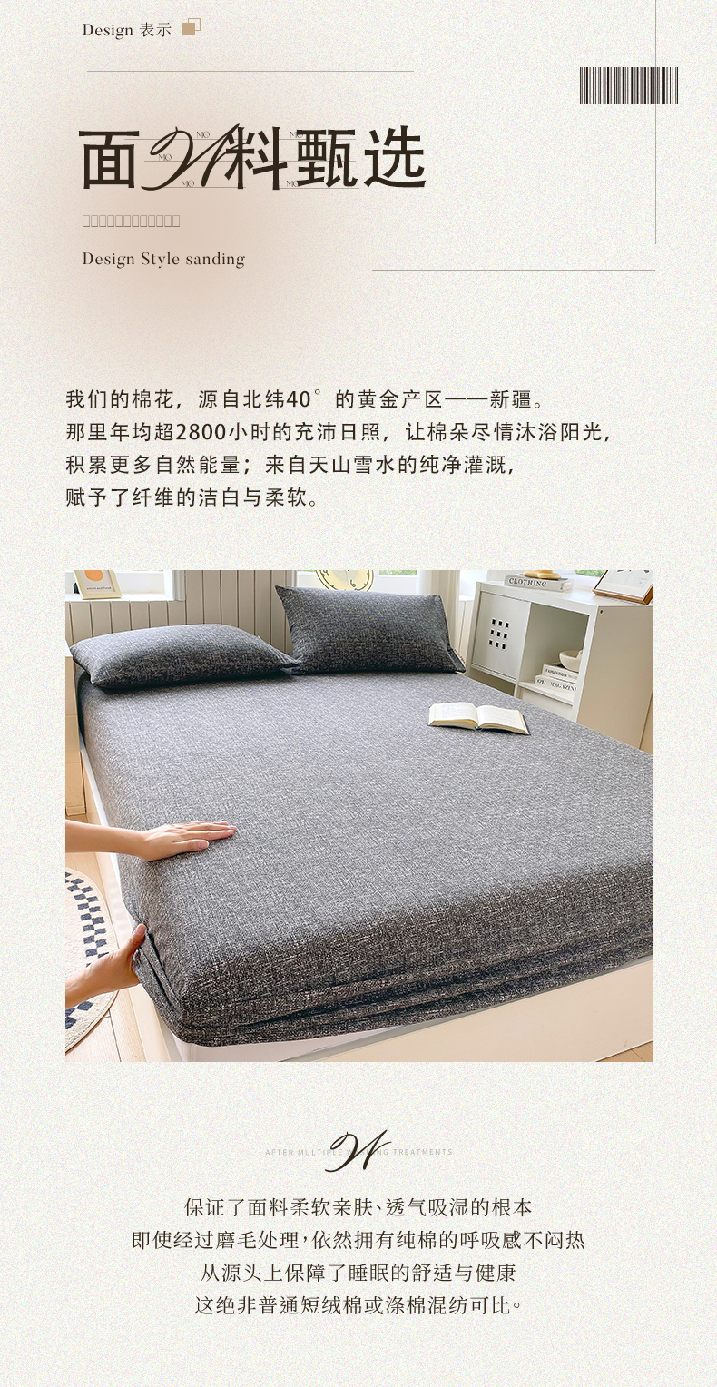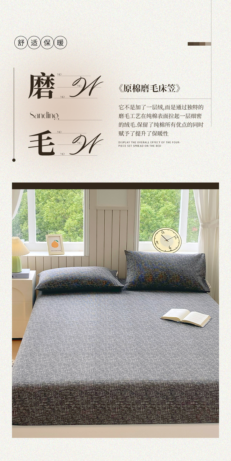 春皖家纺 2025新款原棉磨毛单床笠 床笠单件-风格一 知性灰