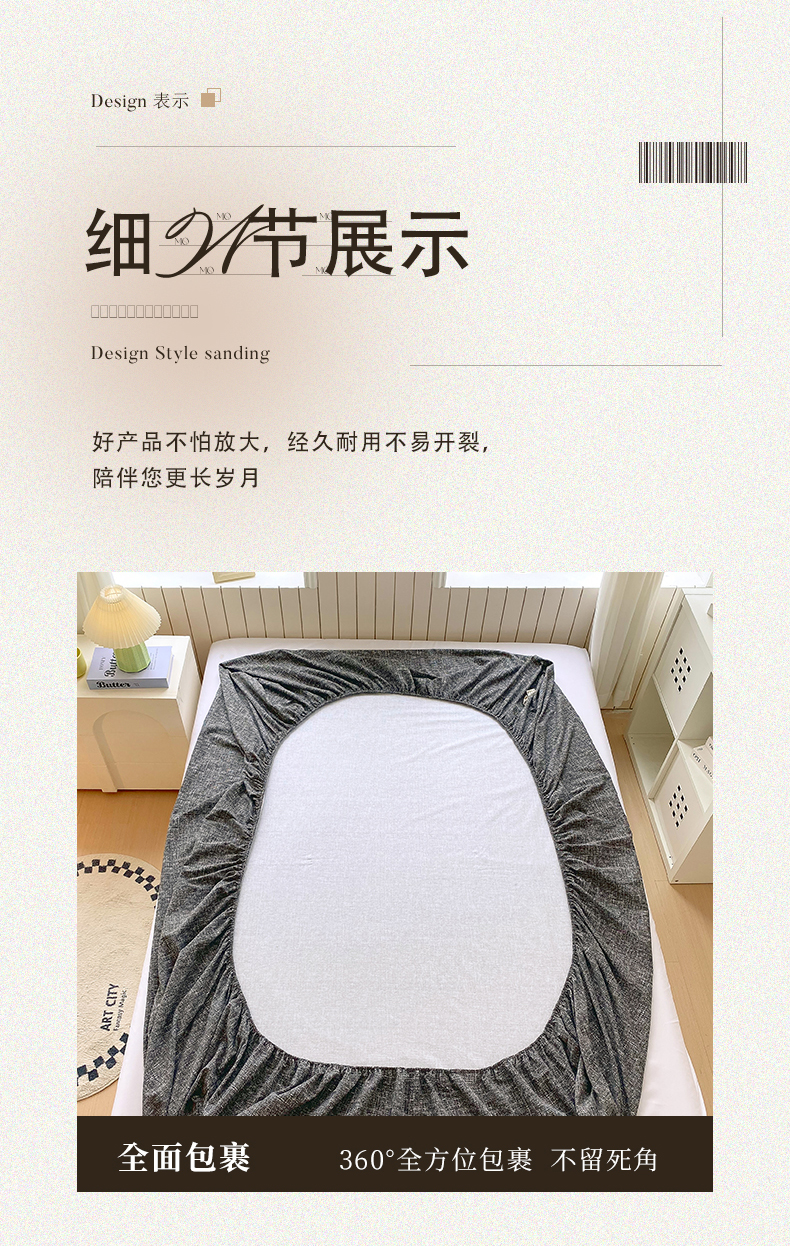 商品名称:春皖家纺 2025新款原棉磨毛单床笠 床笠单件-风格一 知性灰