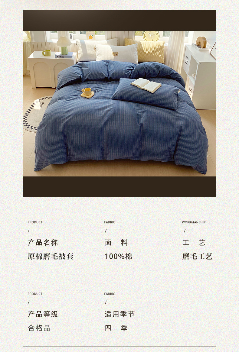 商品名称:春皖家纺 2026新款原棉磨毛单被套 被套单件-风格一 梦蓝图