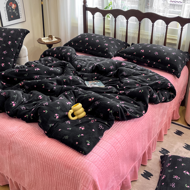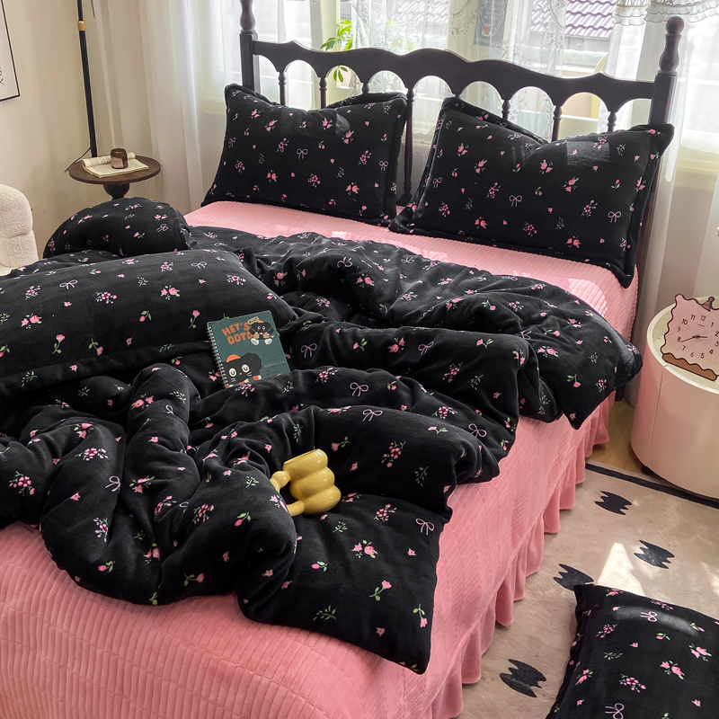 (总)仟网汇 2025新款亲肤舒适双面牛奶绒床盖款四件套,爱心灰,爱心紫,复古小花,黑珍珠,可可奶咖,蔷薇粉,丝绒蛋糕,胭脂,樱桃格趣,枝枝兔,妖姬,紫波点,豆蔻年华,朵缦,赫本,黑糖珍珠,樱桃派,豹纹kt咖