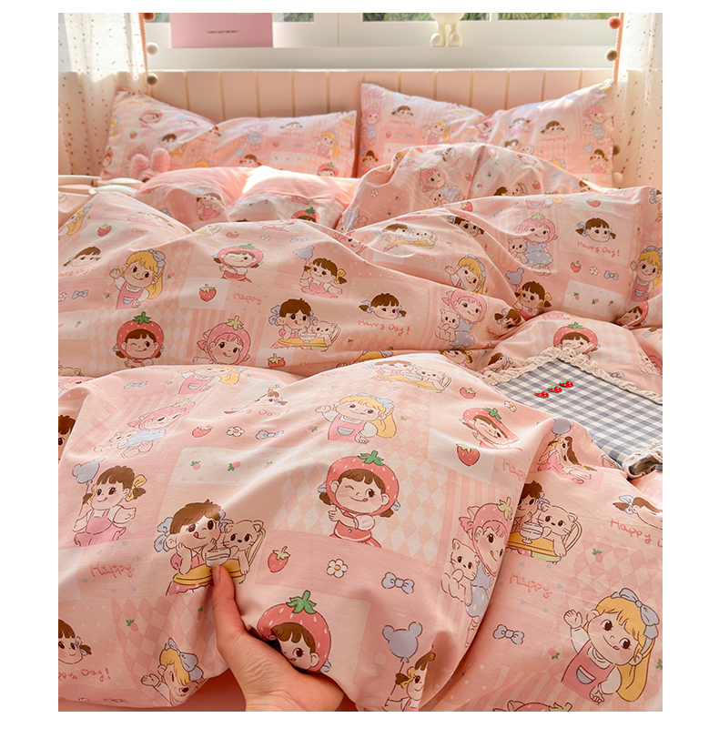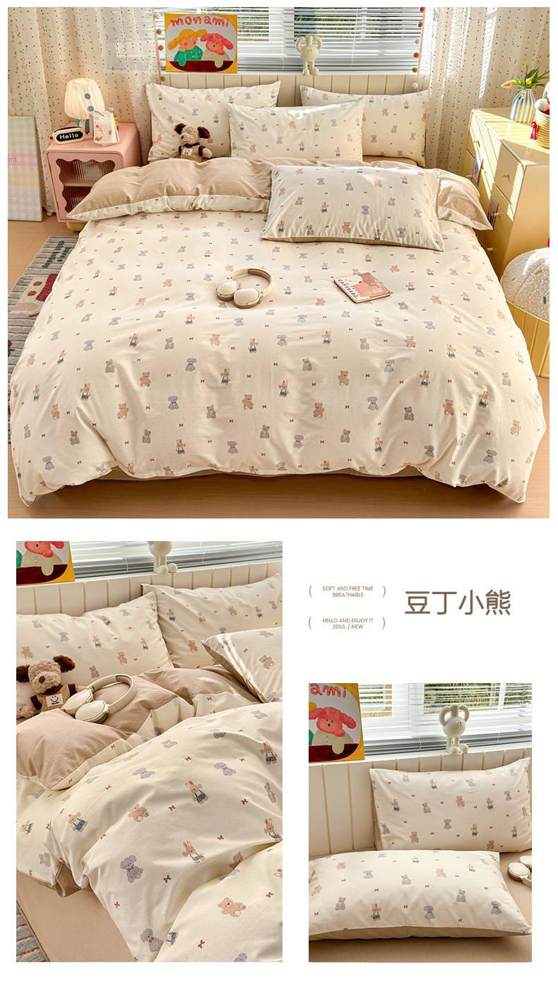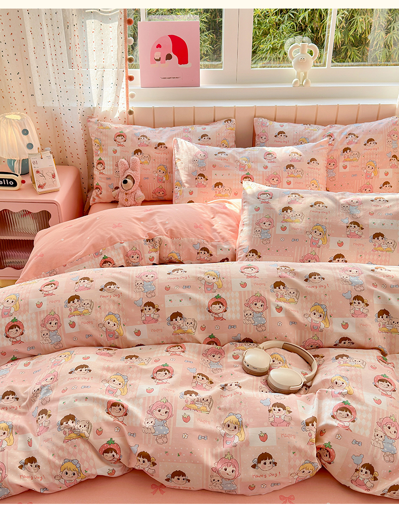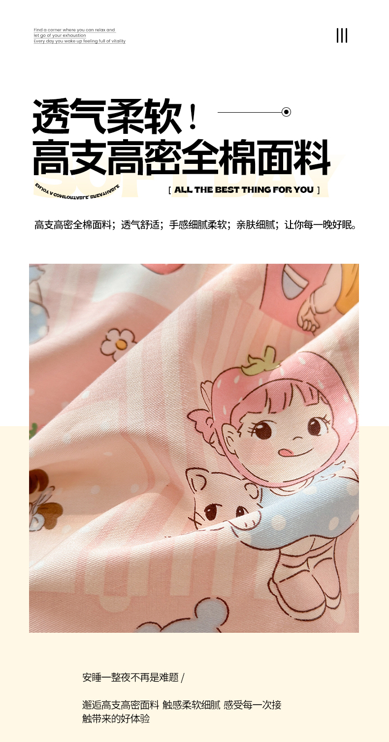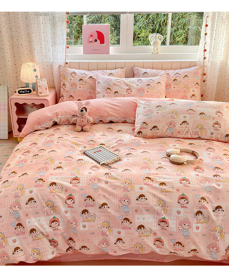 (总)清雅福 2026春夏新款INS小清新40支全棉13372单被套第一批,棒棒糖女孩,春之约定,点点小狗,动物聚会,豆丁小熊,粉心狗,富贵狗,果子象,含羞草,假日小狗