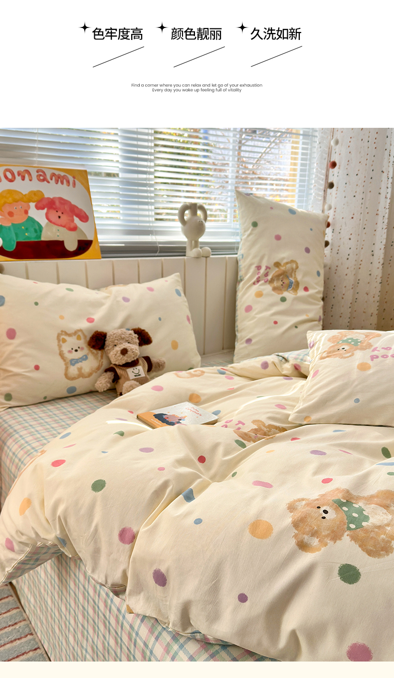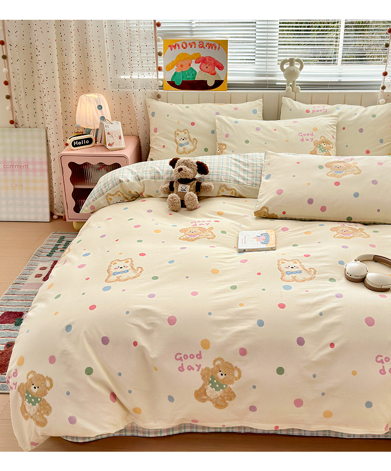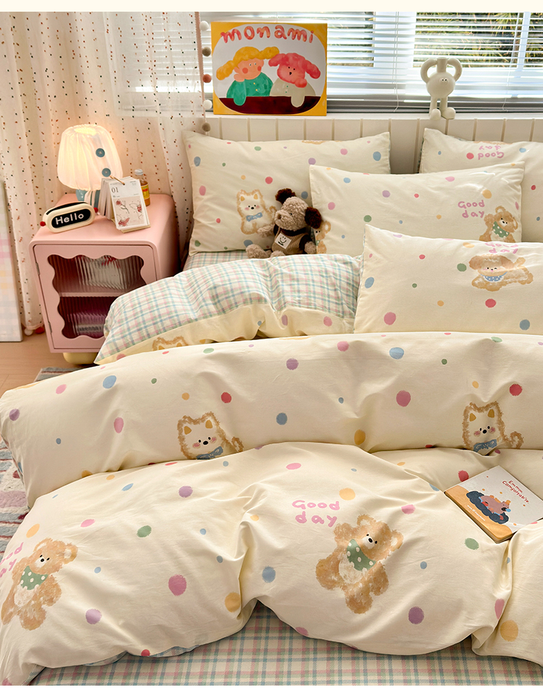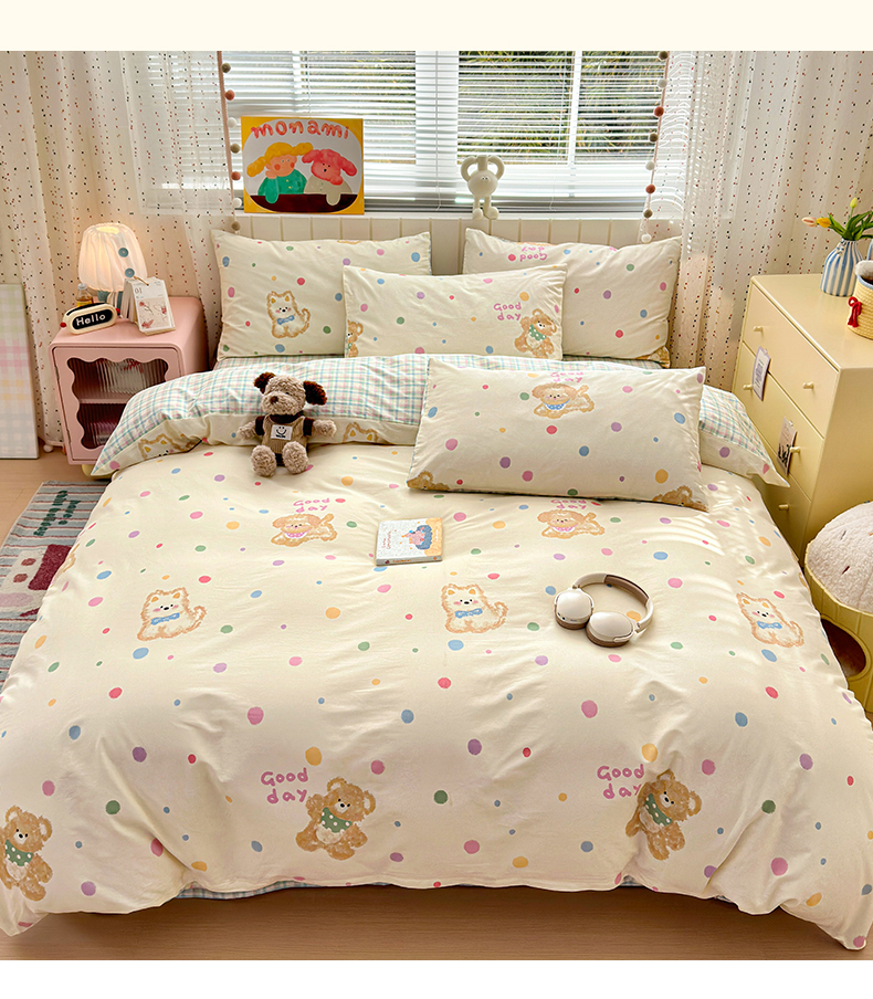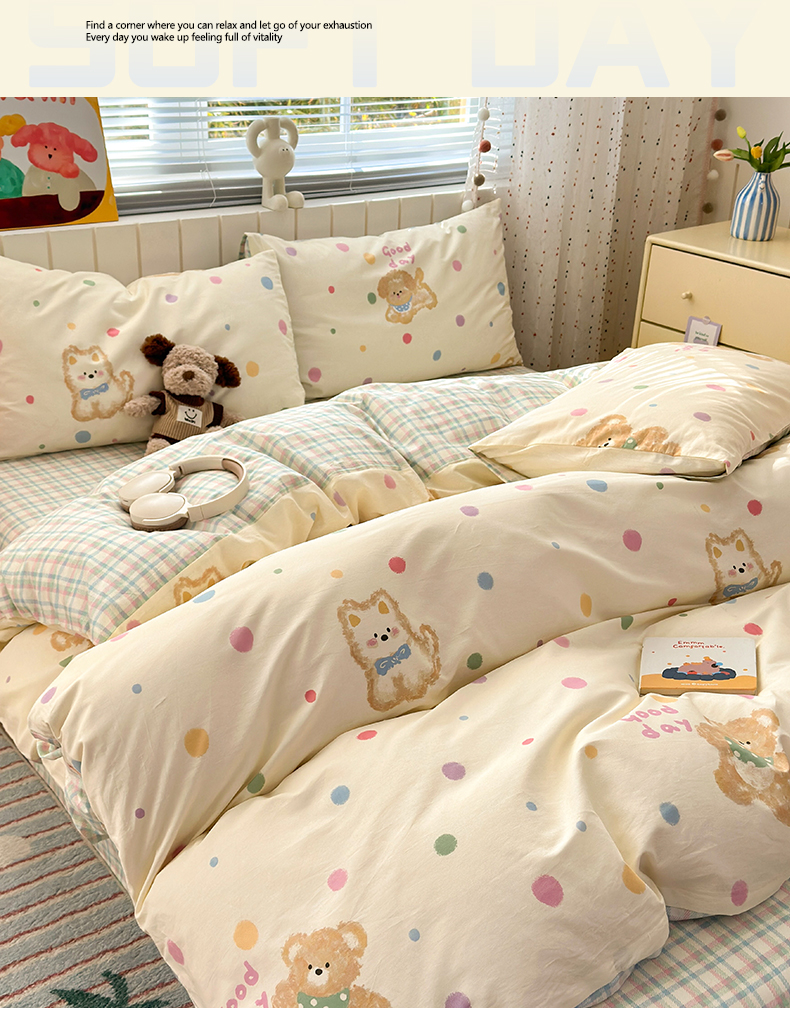 当前位置: 91家纺网 > 商品网购 > 床品套件 > 四件套 > 全棉普通四件套 > 清雅福 2026春夏新款INS小清新40支全棉13372四件套第一批 假日小狗