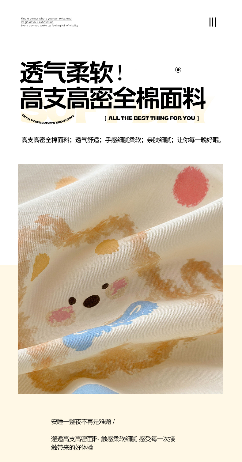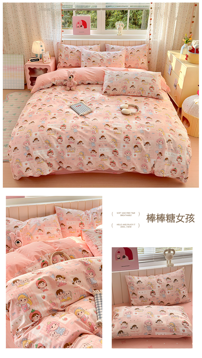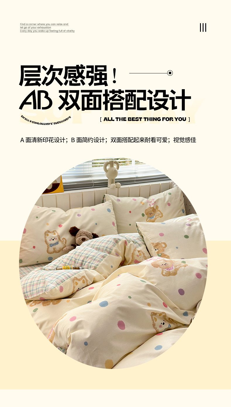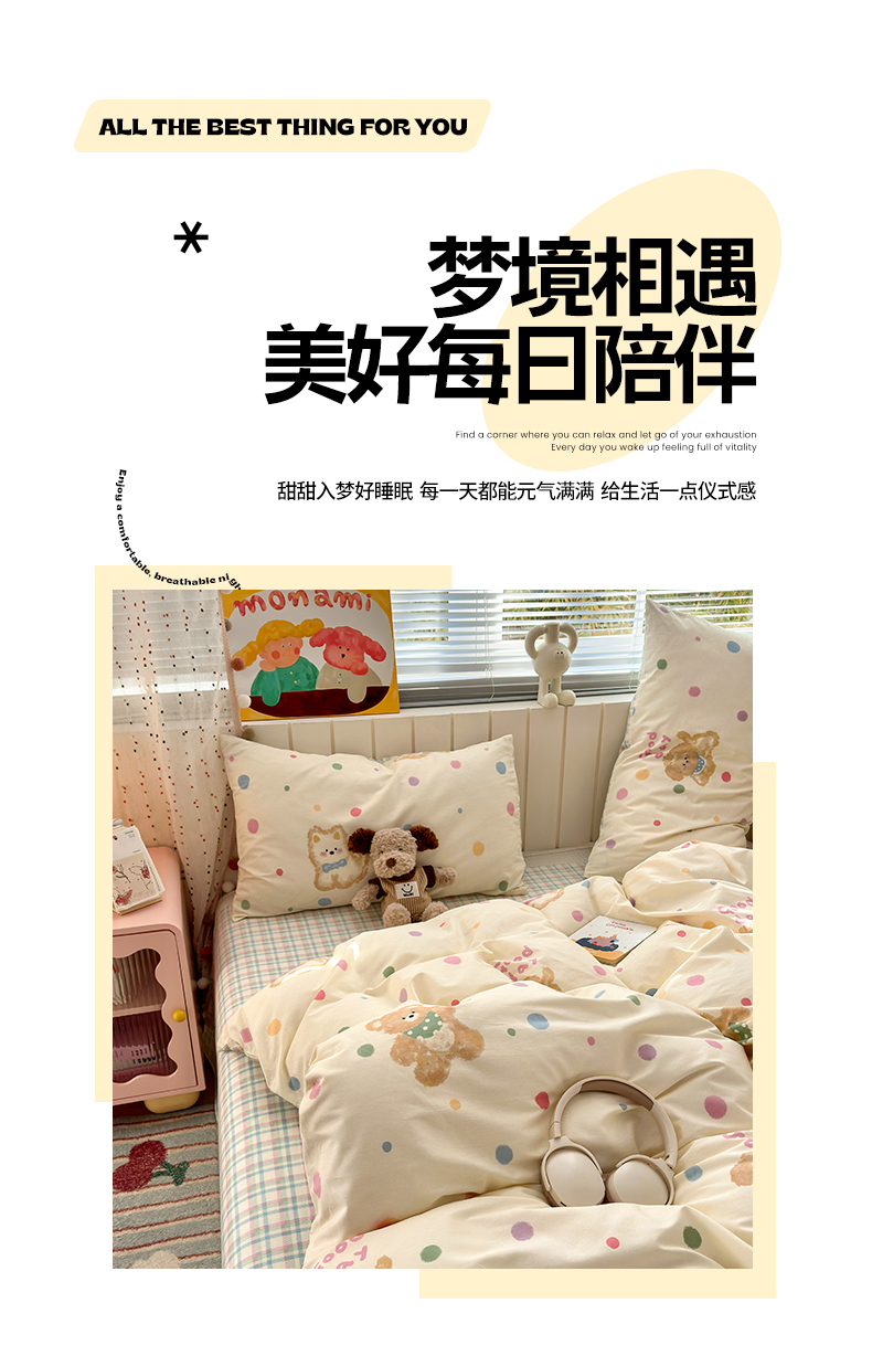 当前位置: 91家纺网 > 商品网购 > 床品套件 > 四件套 > 全棉普通四件套 > 清雅福 2026春夏新款INS小清新40支全棉13372四件套第一批 假日小狗