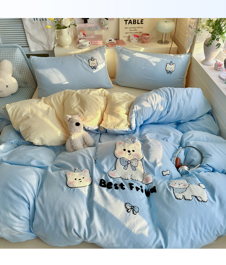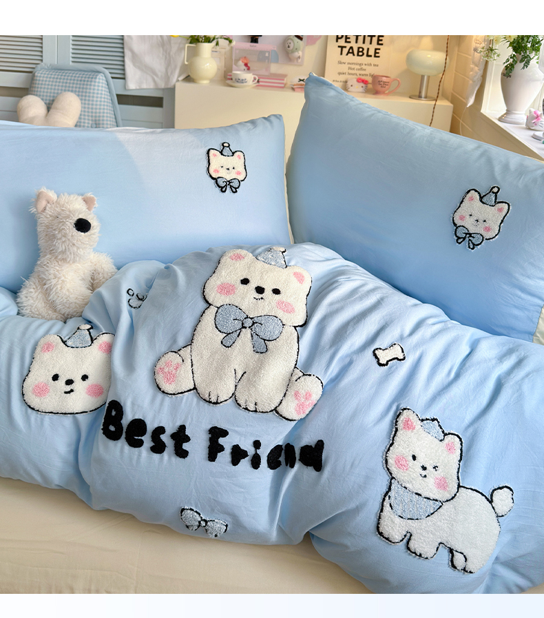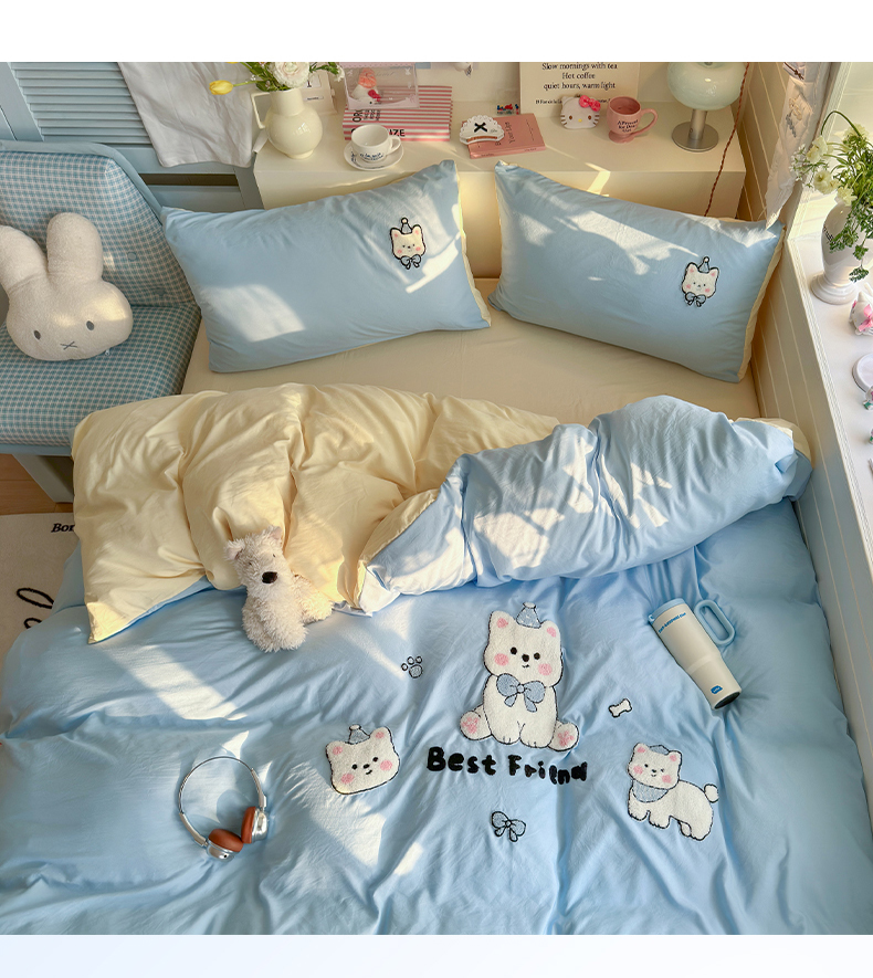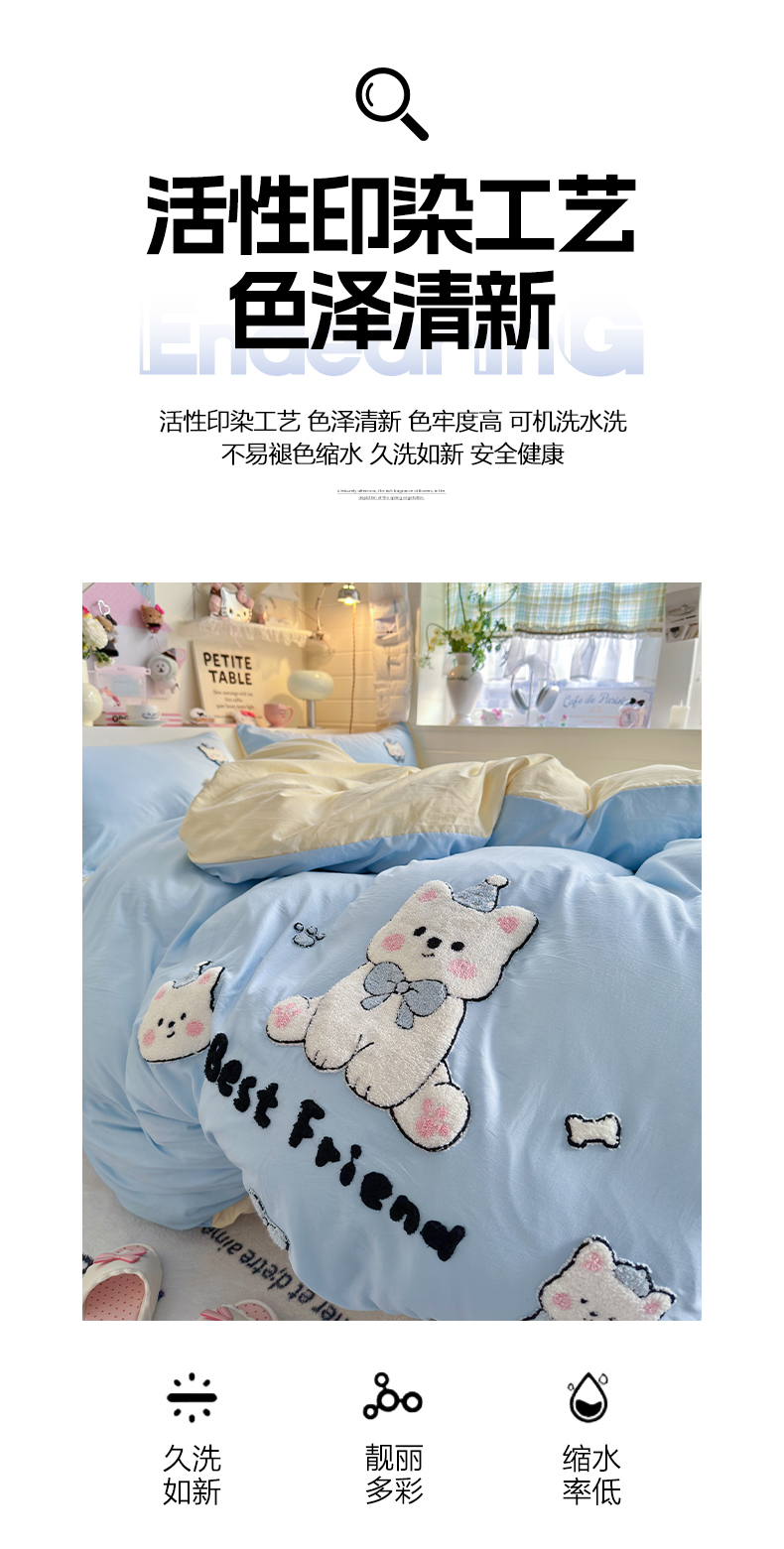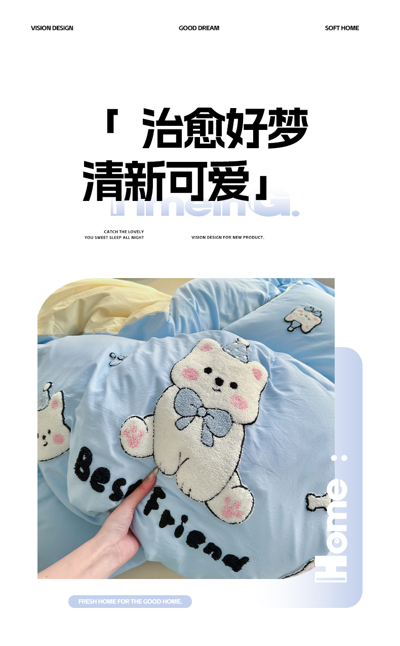 当前位置: 91家纺网 > 商品网购 > 床品套件 > 四件套 > 水洗棉四件套 > 优卡迪家纺馆 2026新款A类亲肤水洗棉毛巾绣系列四件套下载文件包含买家秀 软萌西高-天蓝