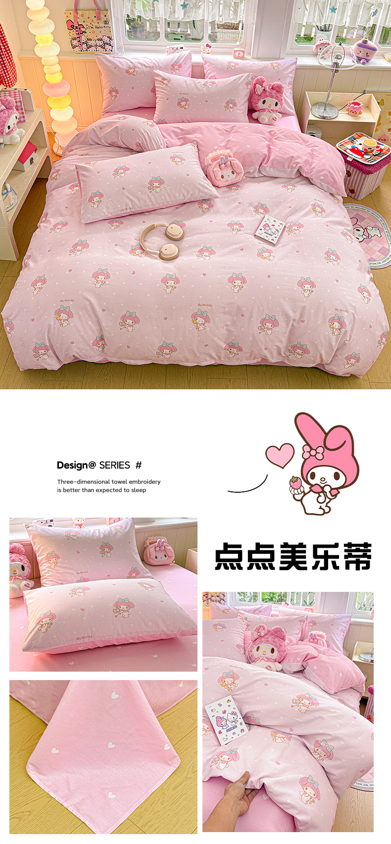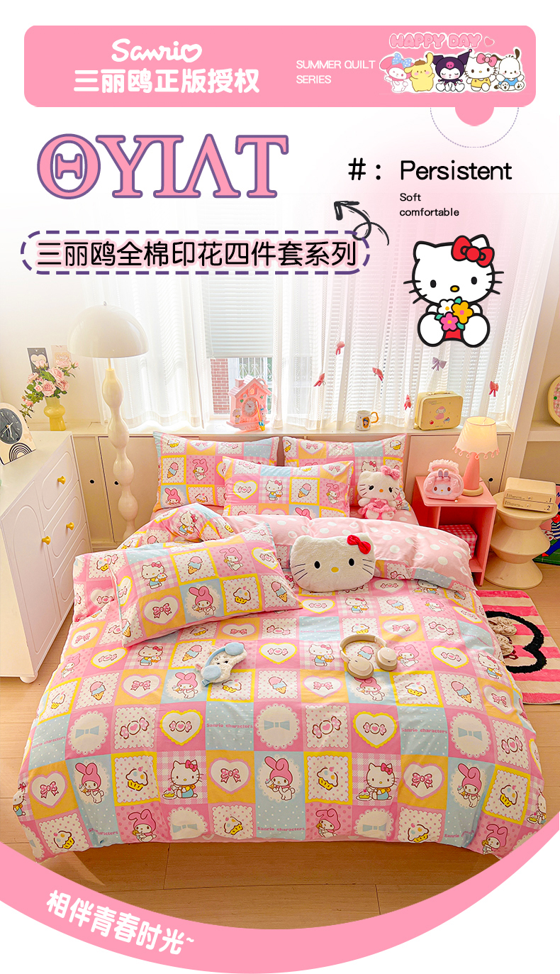 当前位置: 91家纺网 > 商品网购 > 床品套件 > 四件套 > 全棉普通四件套 > 朵希曼 2026新款正版授权全棉纯棉三丽鸥系列 蝴蝶结美乐蒂