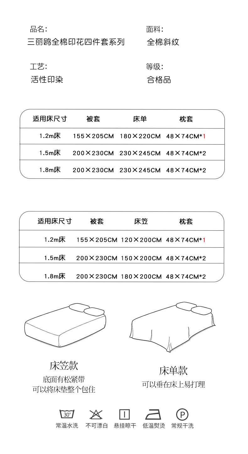 【床笠款】1.2三件套-被套155x205 | ¥100.00 |