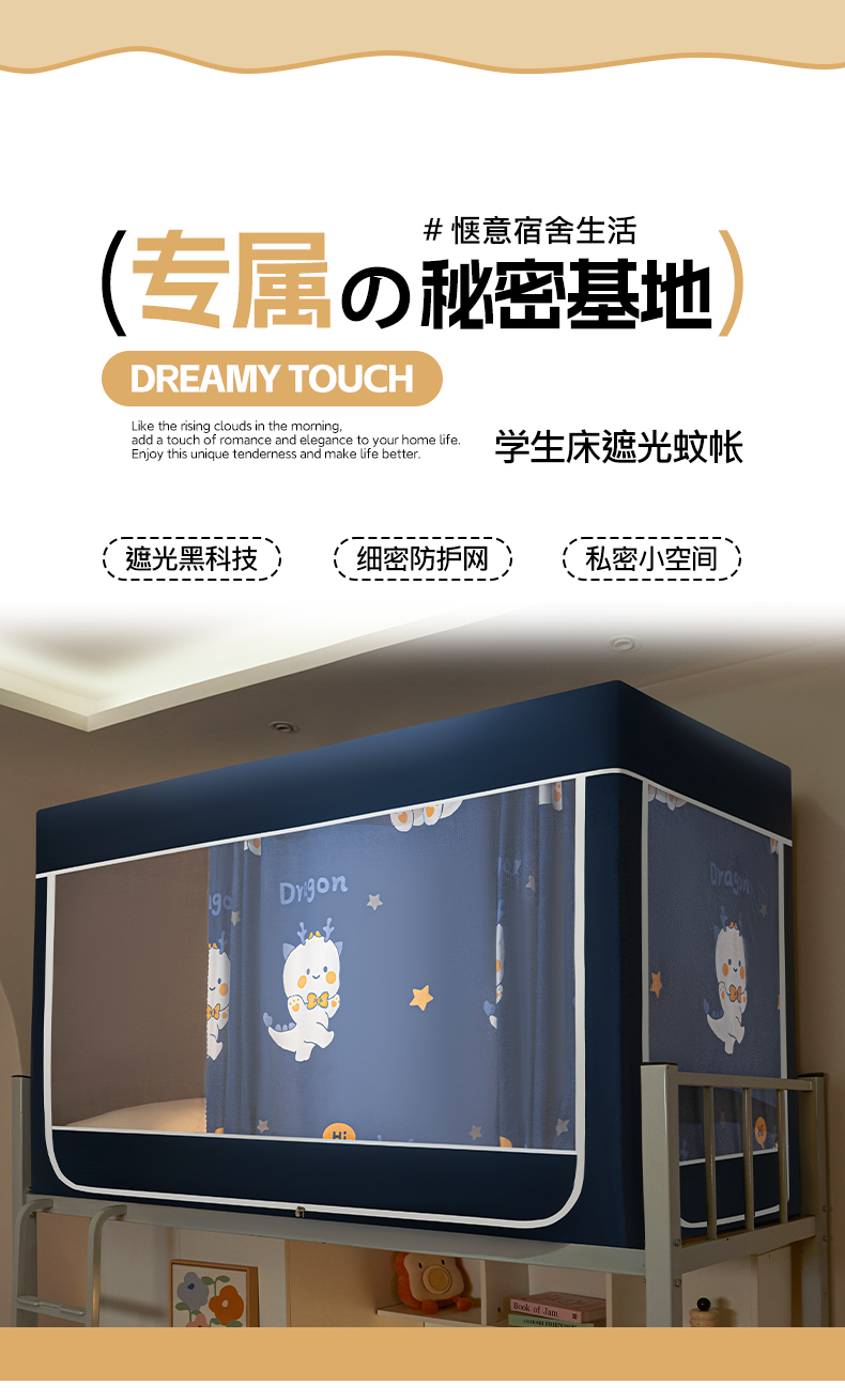 当前位置: 91家纺网 > 商品网购 > 床上用品 > 蚊帐 > 坐床式蚊帐 > 初心家纺 2026新款学生床遮光蚊帐 蓝色恐龙