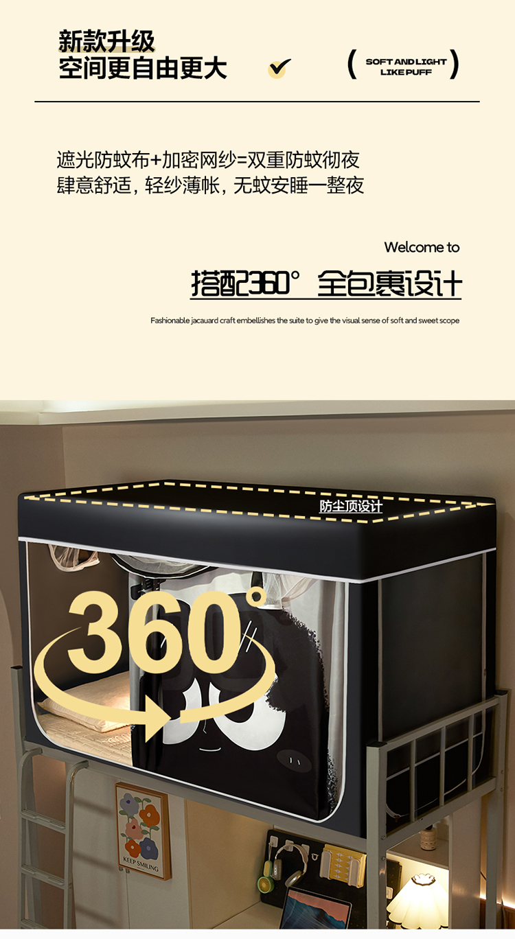 (总)初心家纺 2026新款学生床遮光蚊帐,绿色煤球,藏青,草莓熊,雏菊,花园熊猫,帕恰狗-灰,帕恰狗-蓝,甜心宝贝,玉桂狗,蓝色恐龙,小金鱼,纯灰色