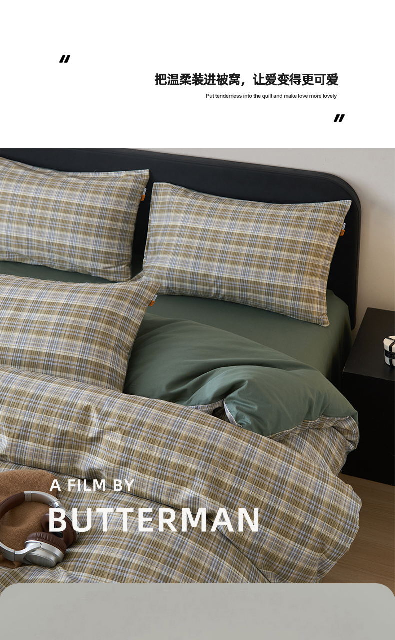 当前位置: 91家纺网 > 商品网购 > 床品套件 > 四件套 > 全棉普通四件套 > 简宜家居(朝初家纺) 2026新款简约格子40支13070纯棉全棉四件套 抹茶格