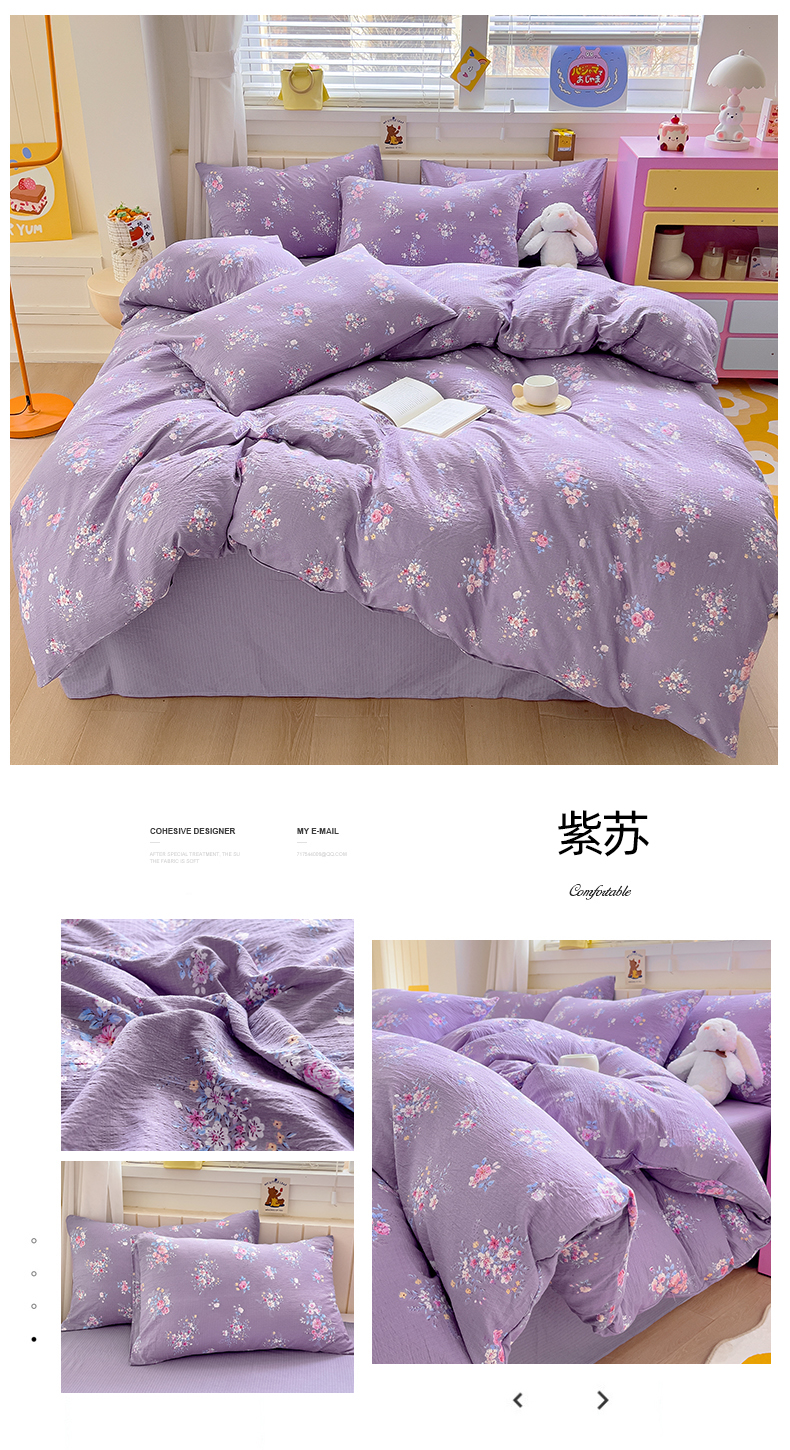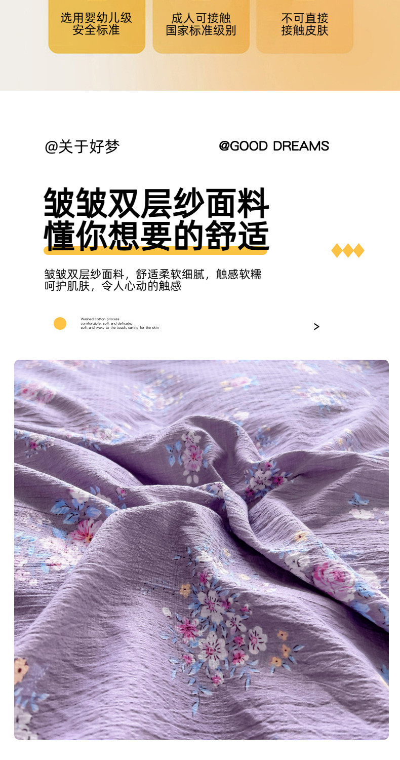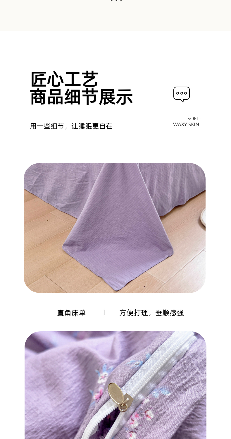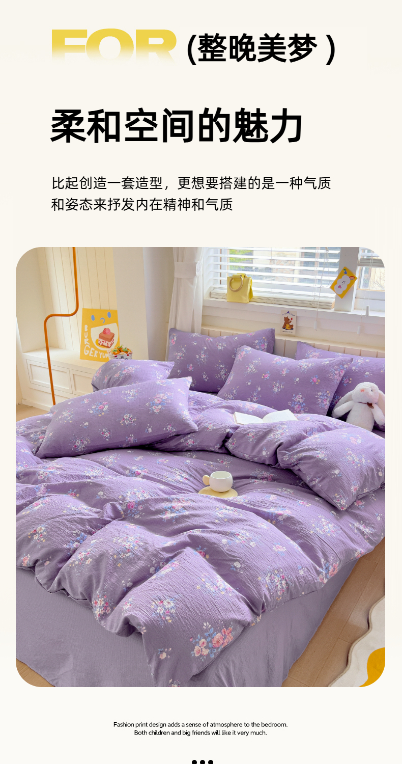 商品名称:找底底家纺 2026新款泡泡棉小清新双层纱床裙款四件套 紫苏