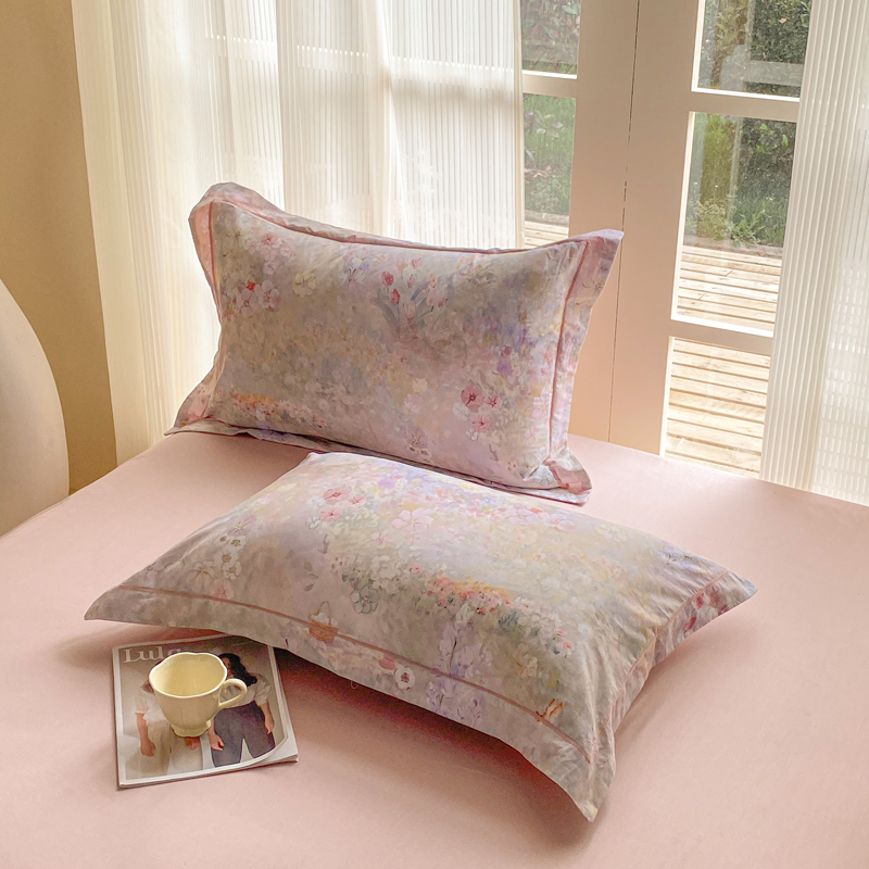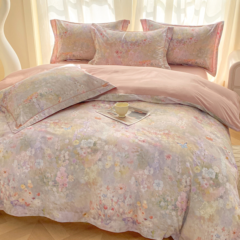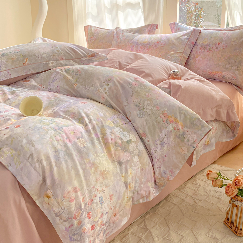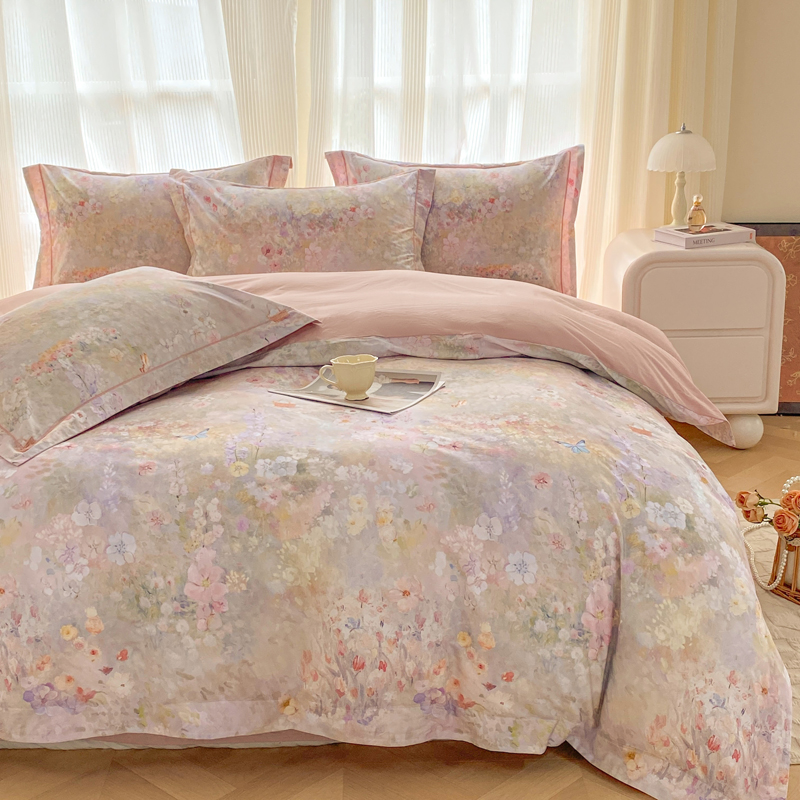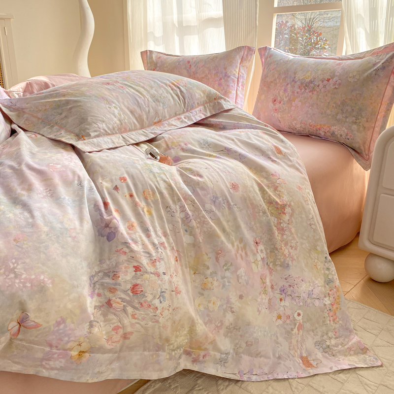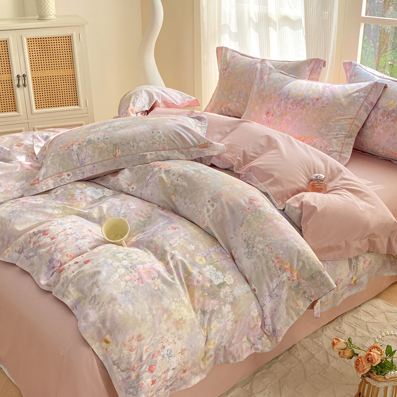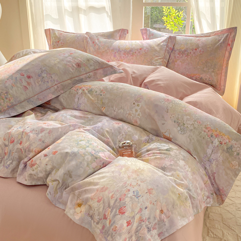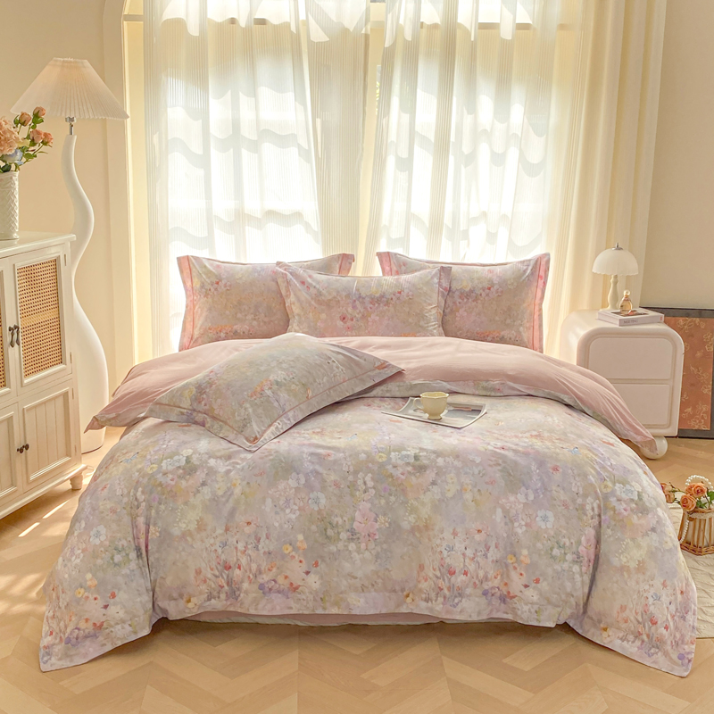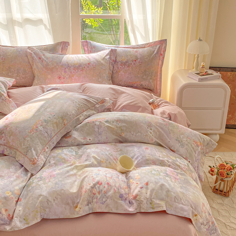 凌鼎 2026新款高支高密100%全棉数码印花四件套 月光水影粉