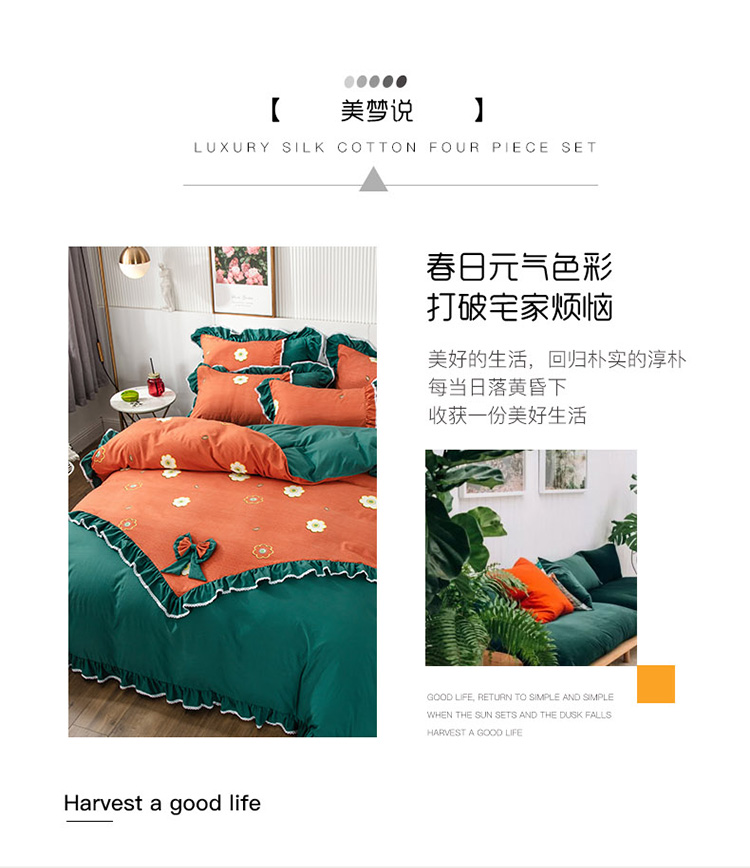 商品名称:兴美佳 新款网红爆款奢丝棉四件套 幸运草-橙蓝