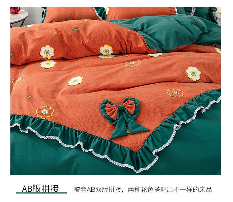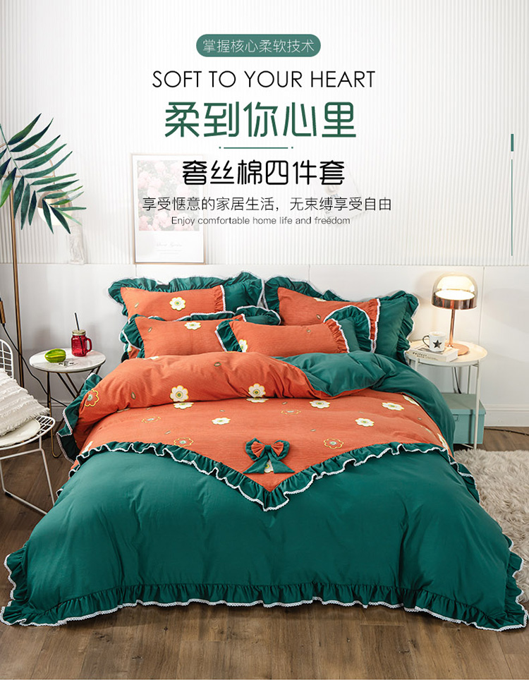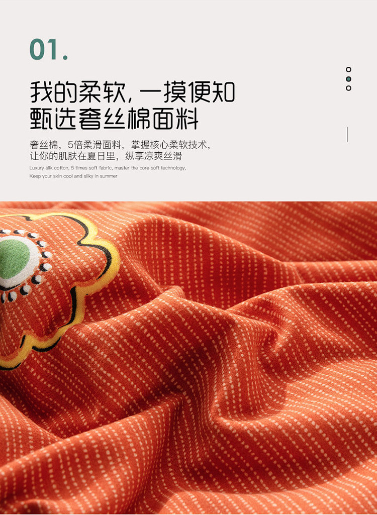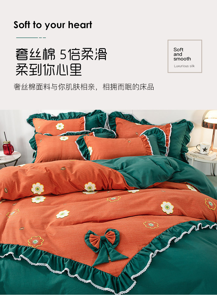 兴美佳 新款网红爆款奢丝棉四件套 幸运草-橙蓝