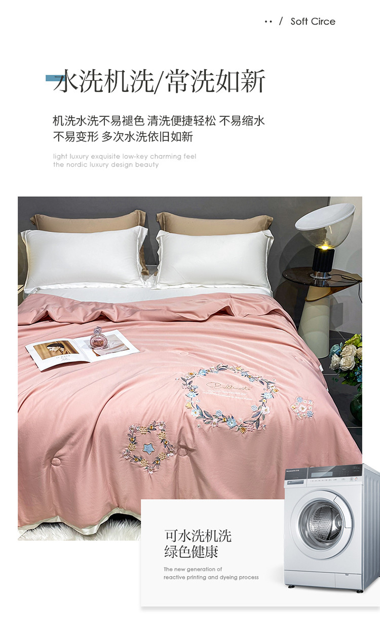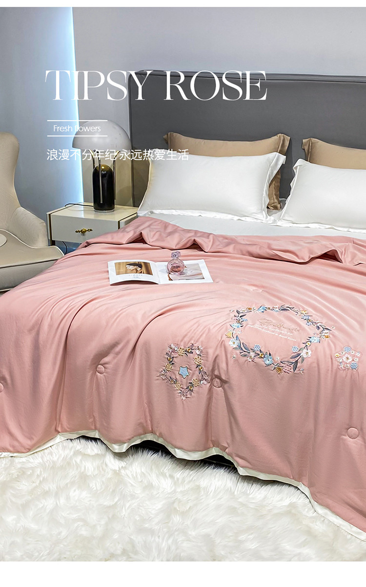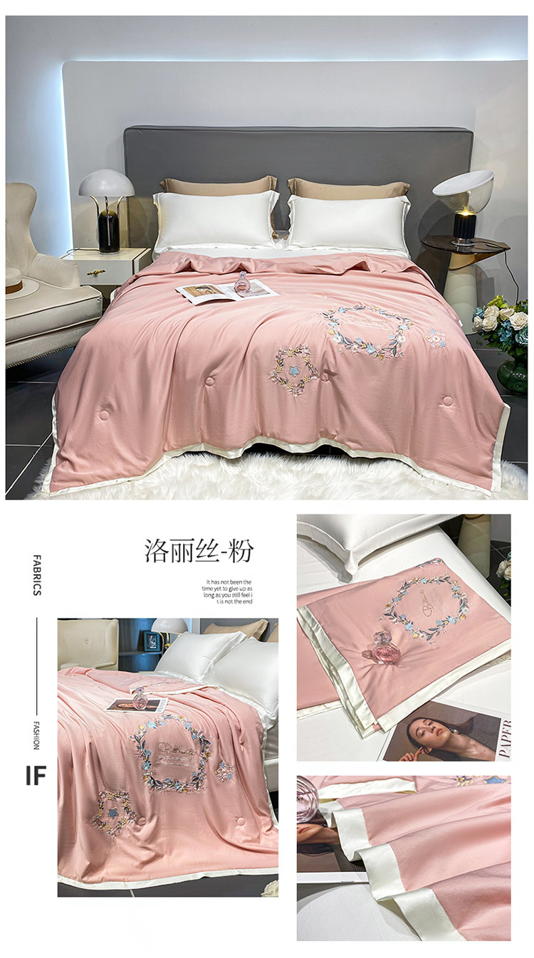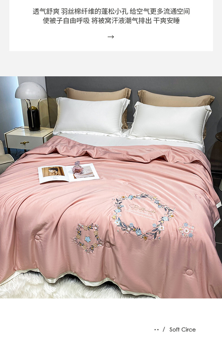 商品名称:吾秀 2022新款柔赛丝刺绣夏被-洛丽丝 洛丽丝-粉