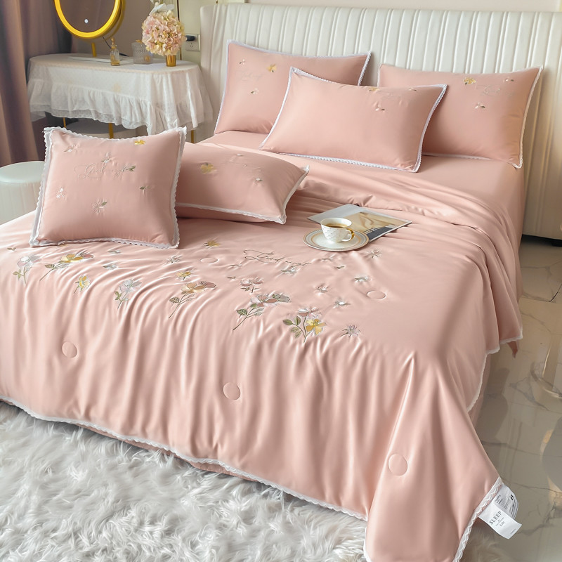 商品名称:安妮家居 2022新款水洗真丝夏被四件套 蕾丝裸粉