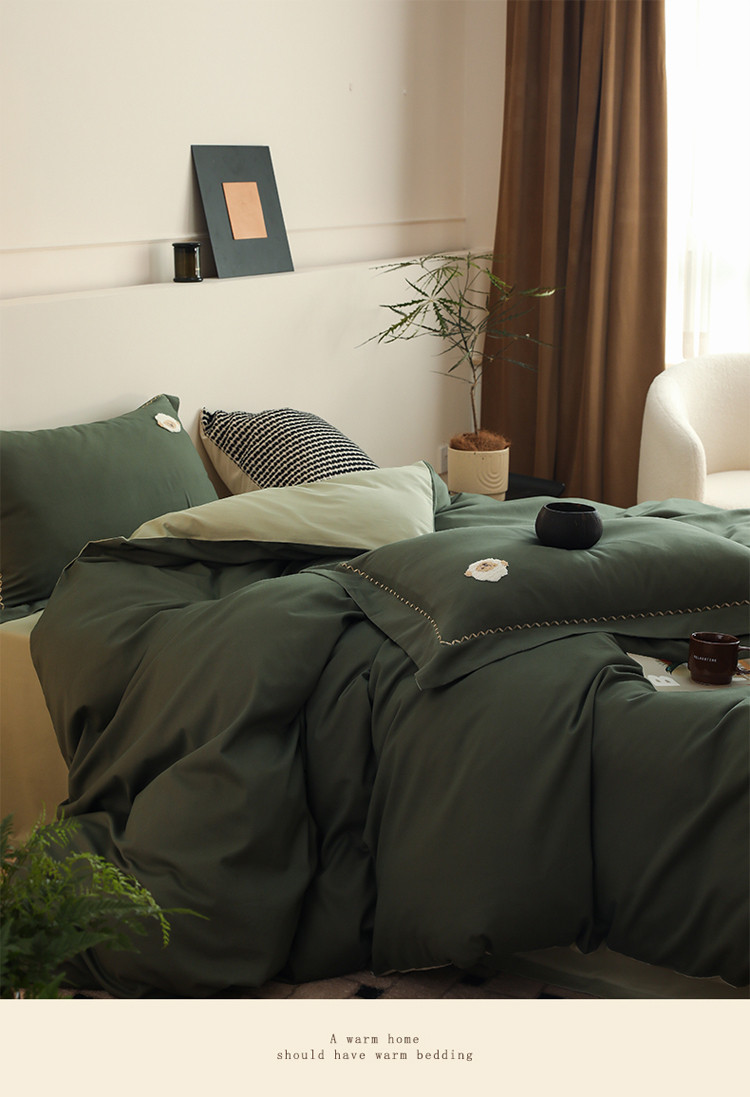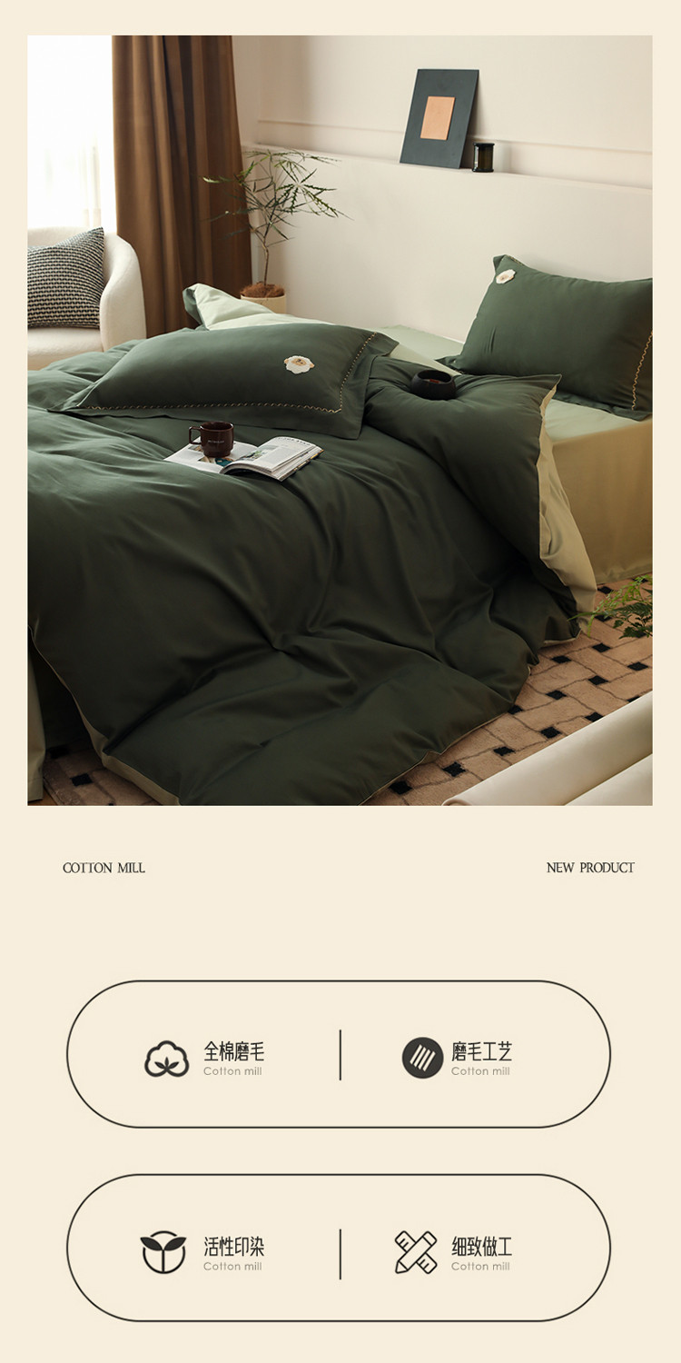 沐白家纺 2022精梳火山全棉小磨毛纯色系列-单品被套 森林绿丨丛林绿