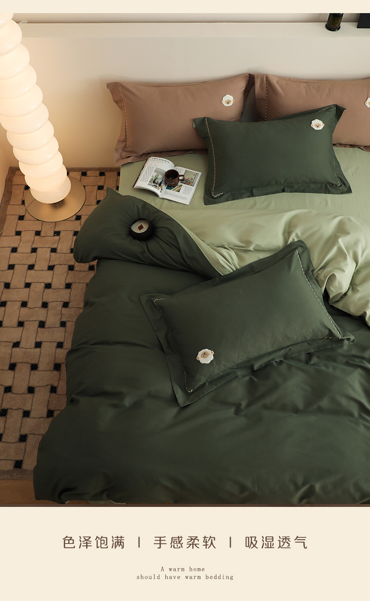 商品名称:沐白家纺 2022精梳火山全棉小磨毛纯色系列-单品被套 森林绿丨丛林绿