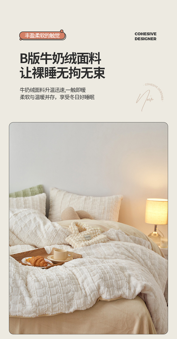 商品名称:榻尚家居 2023新款加厚獭兔绒牛奶绒四件套 奶白