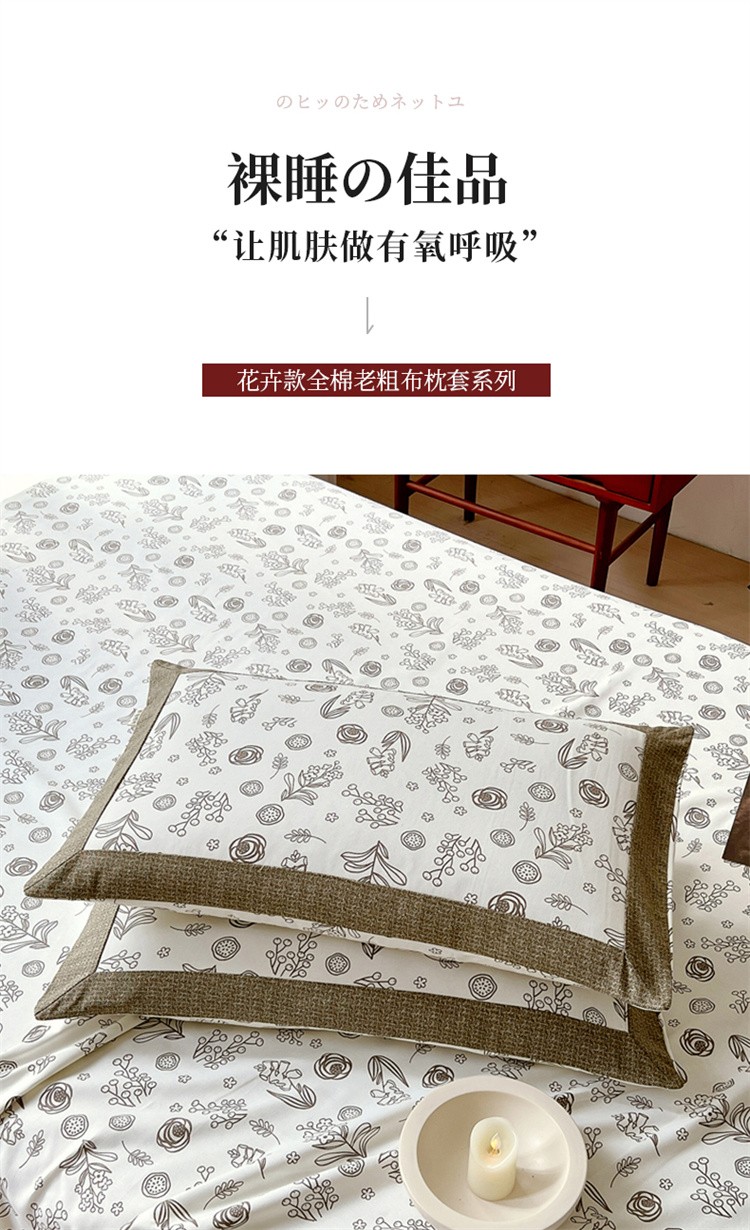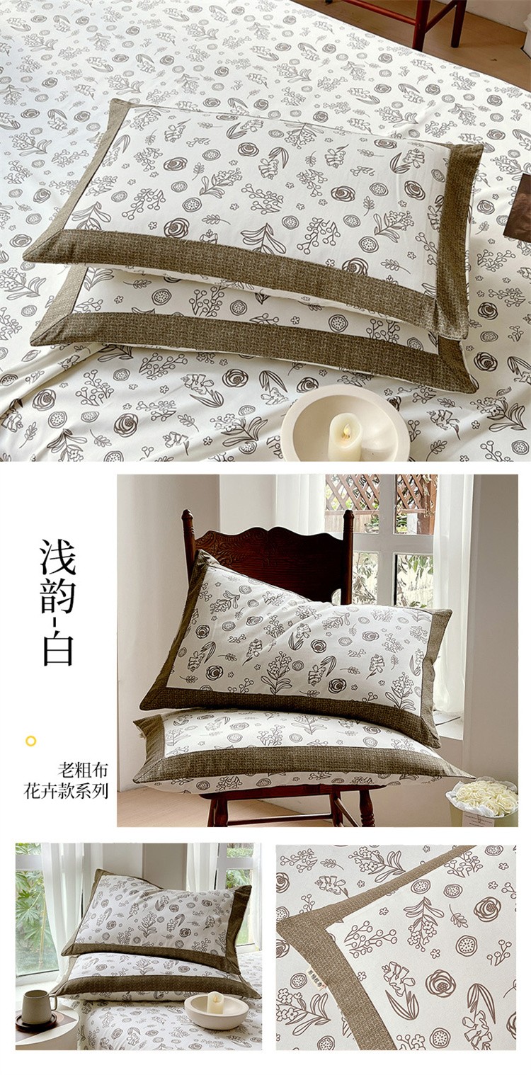 春皖家纺 2023新款花卉款老粗布单品枕套系列 浅韵-白