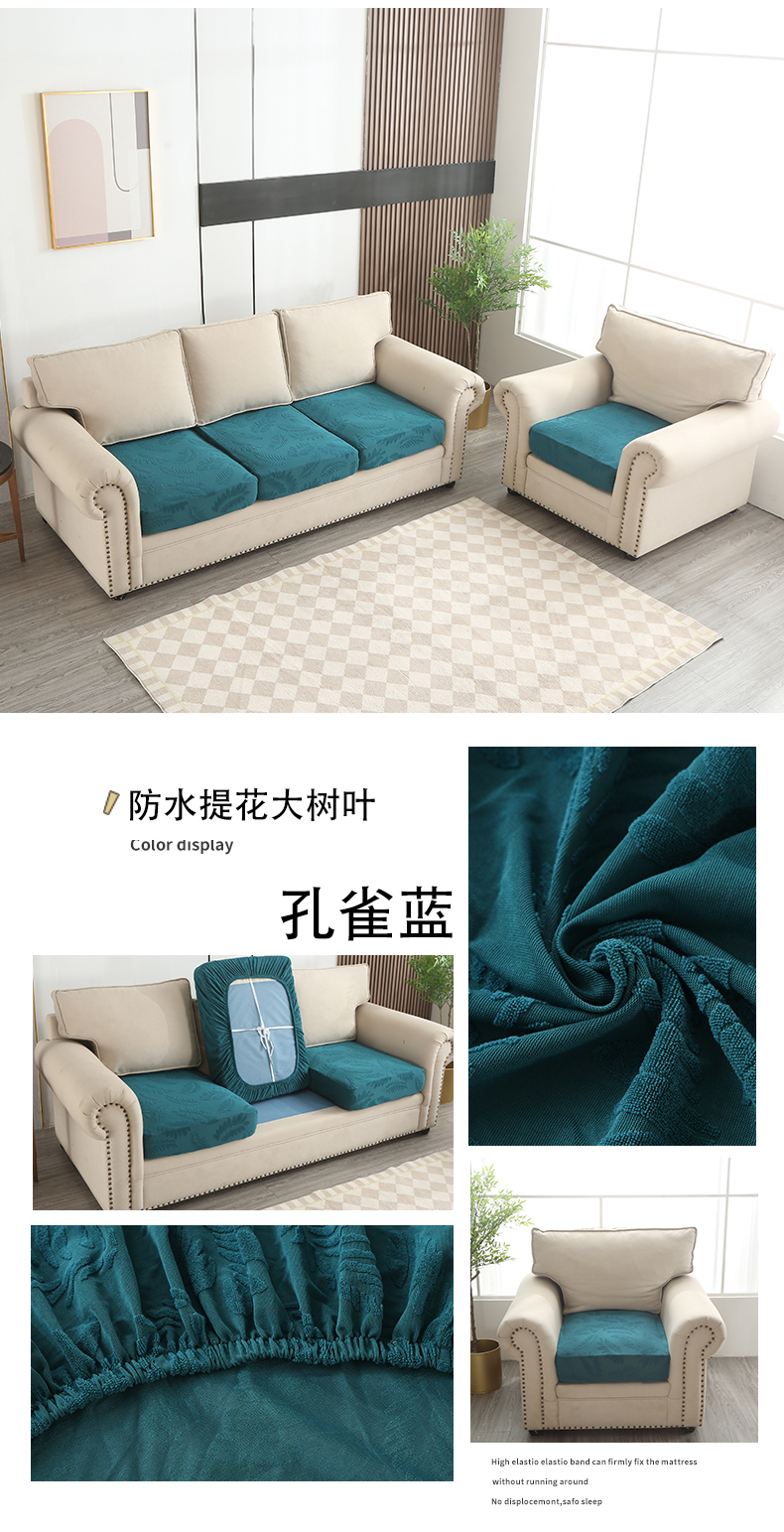 当前位置: 91家纺网 > 商品网购 > 居家布艺 > 坐垫/椅垫/沙发垫 > 沙发垫 > 兴妮雅家纺 2023新款大树叶防水弹力立体浮雕提花组合沙发坐垫套 孔雀蓝