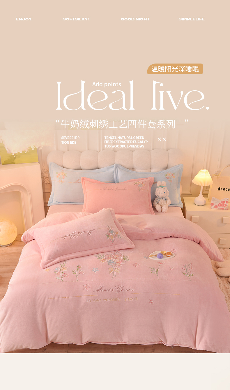 (总)迪欧芙 2023新款高克重直播牛奶绒刺绣四件套-莫奈小花园