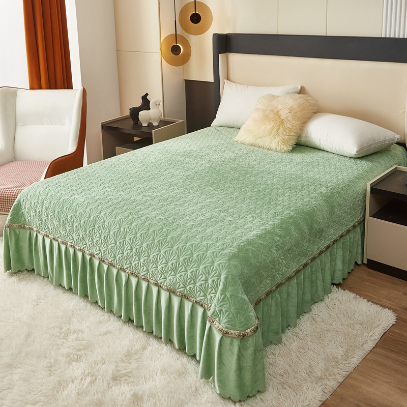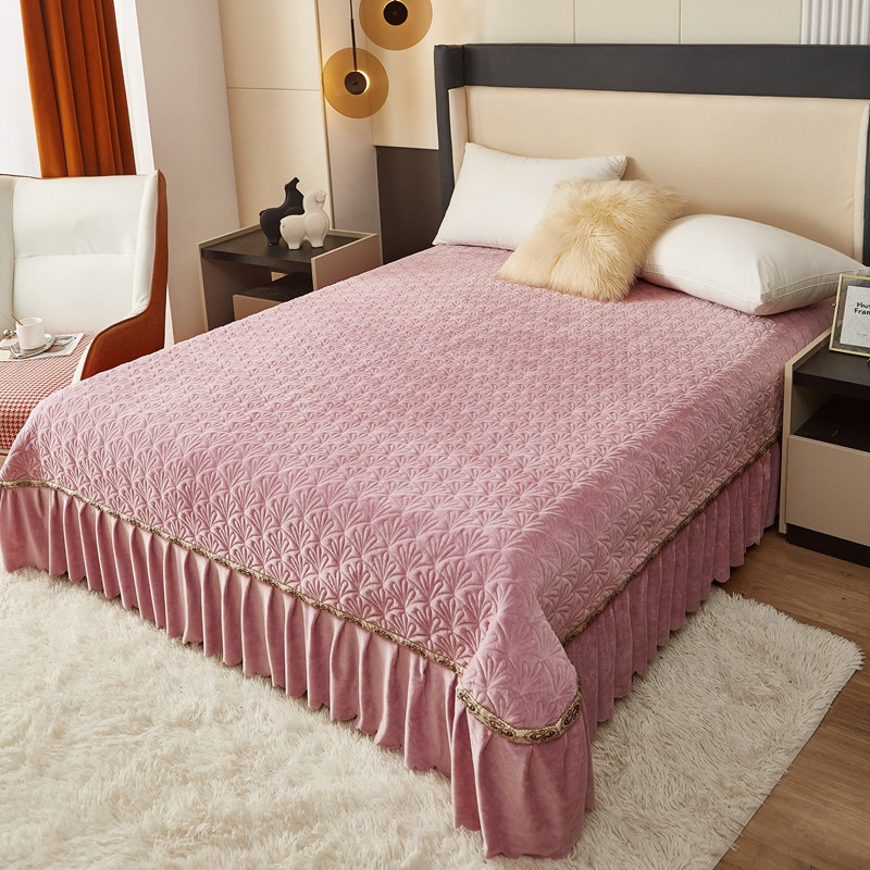 (总)雅眠居 2023秋冬新款纯色牛奶绒床盖床裙款夹棉婴儿绒床盖床单