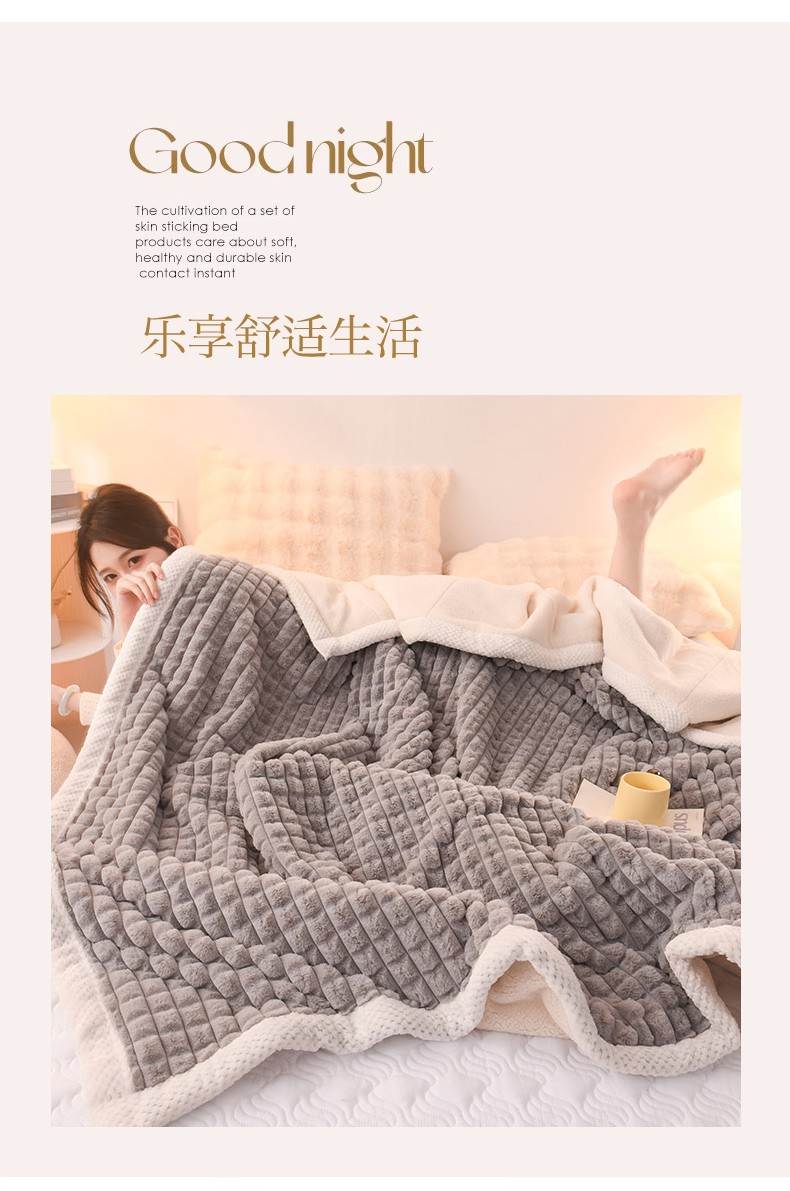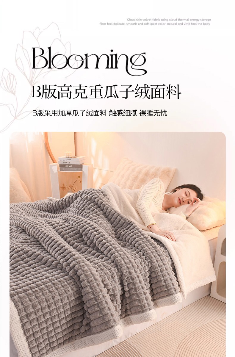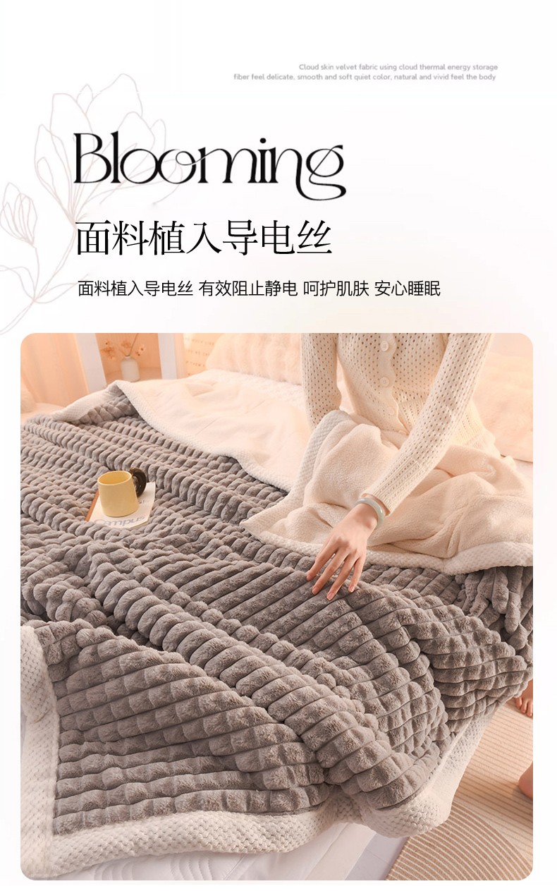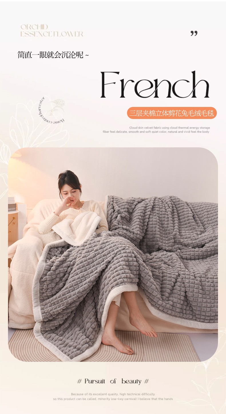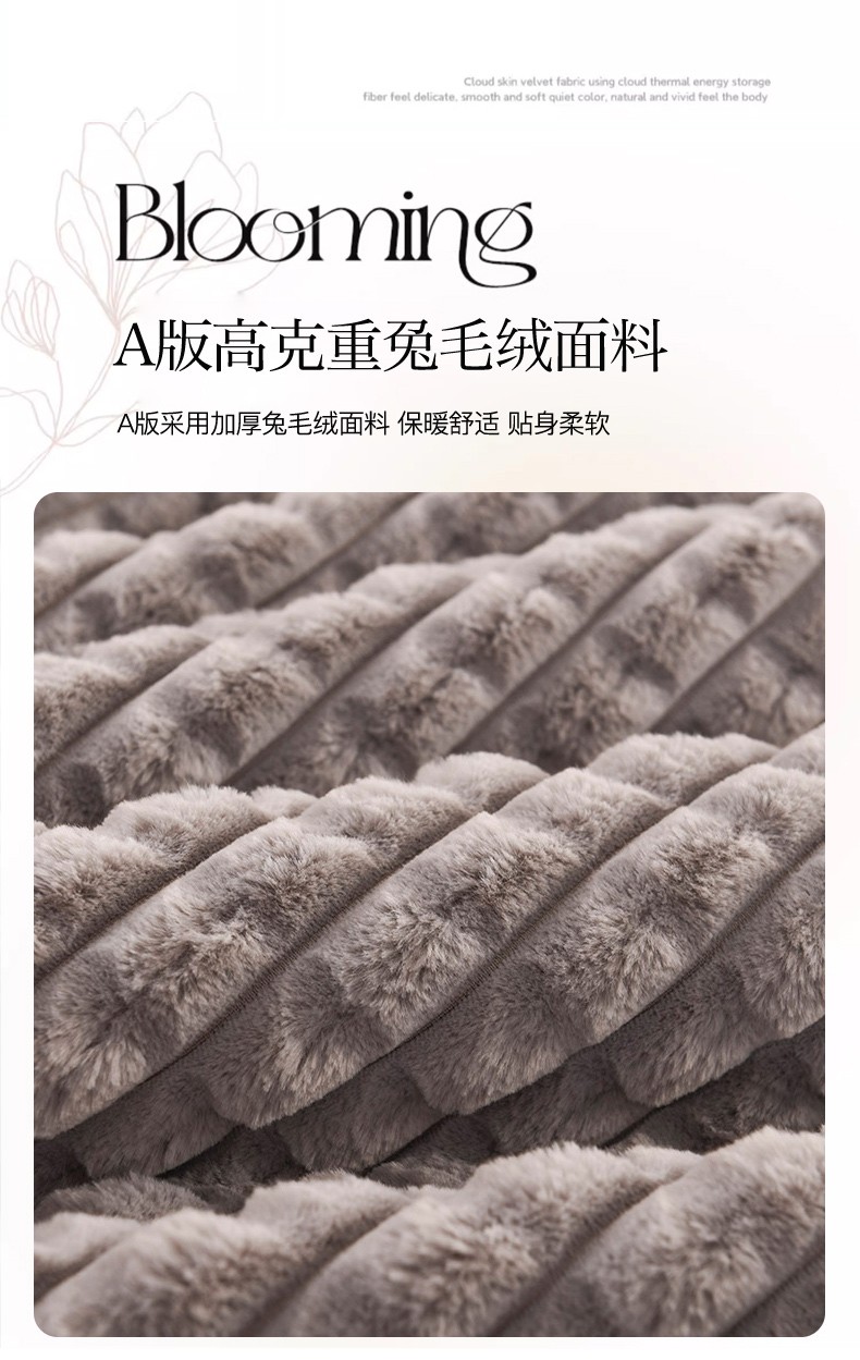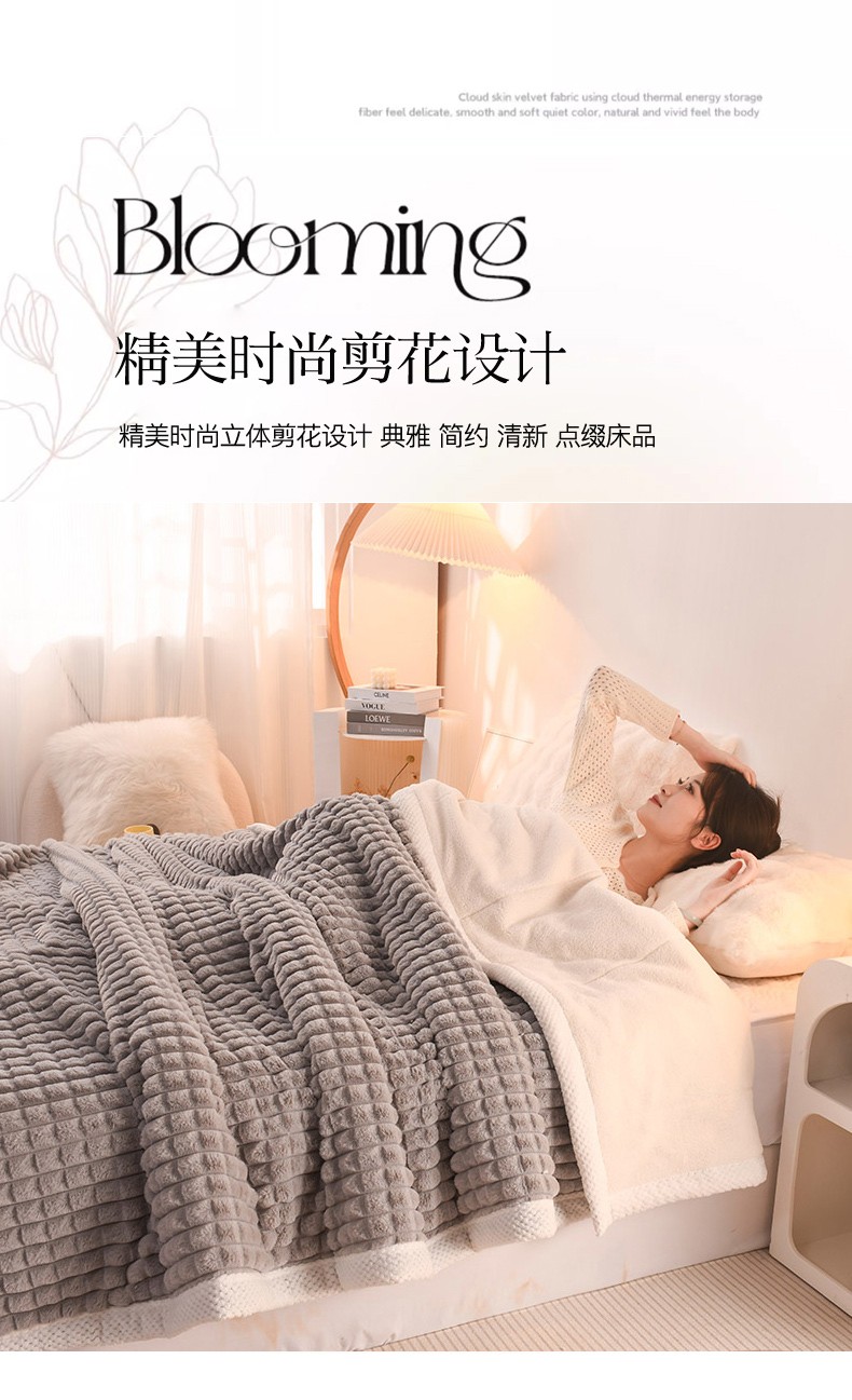 商品名称:印季 2024新款三层夹棉立体剪花兔毛绒毛毯(亮场景) 浅灰