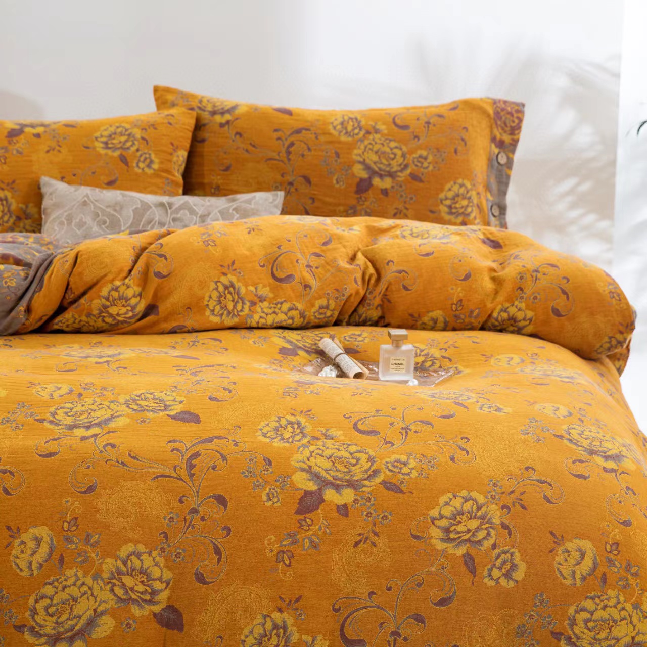 商品名称:双层纱家居 2024新款纽扣款四件套 陌上花开黄
