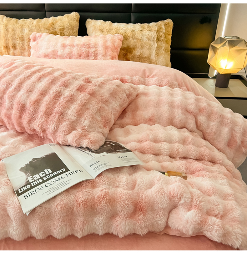 (总)默忆 2025新款七彩泡泡兔毛绒兔兔绒四件套