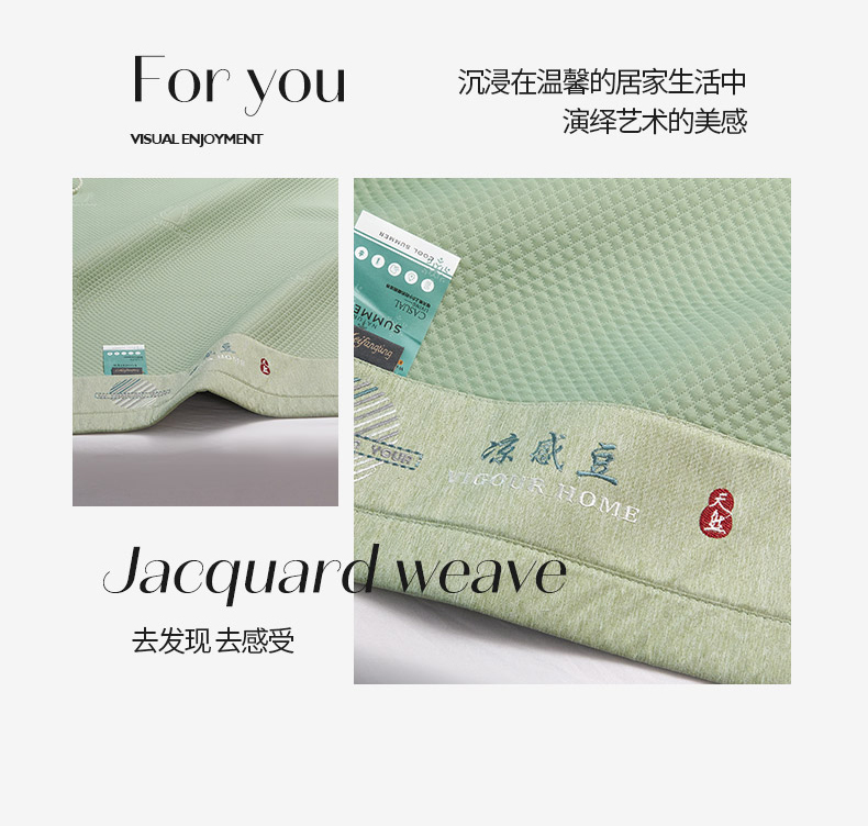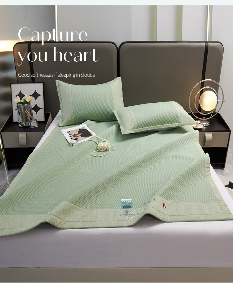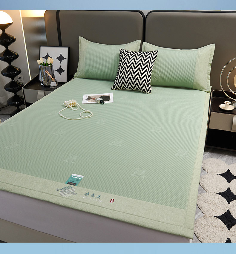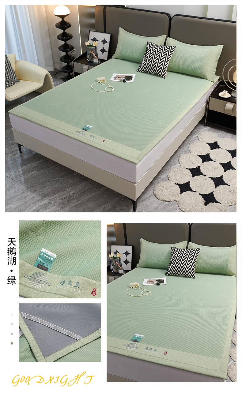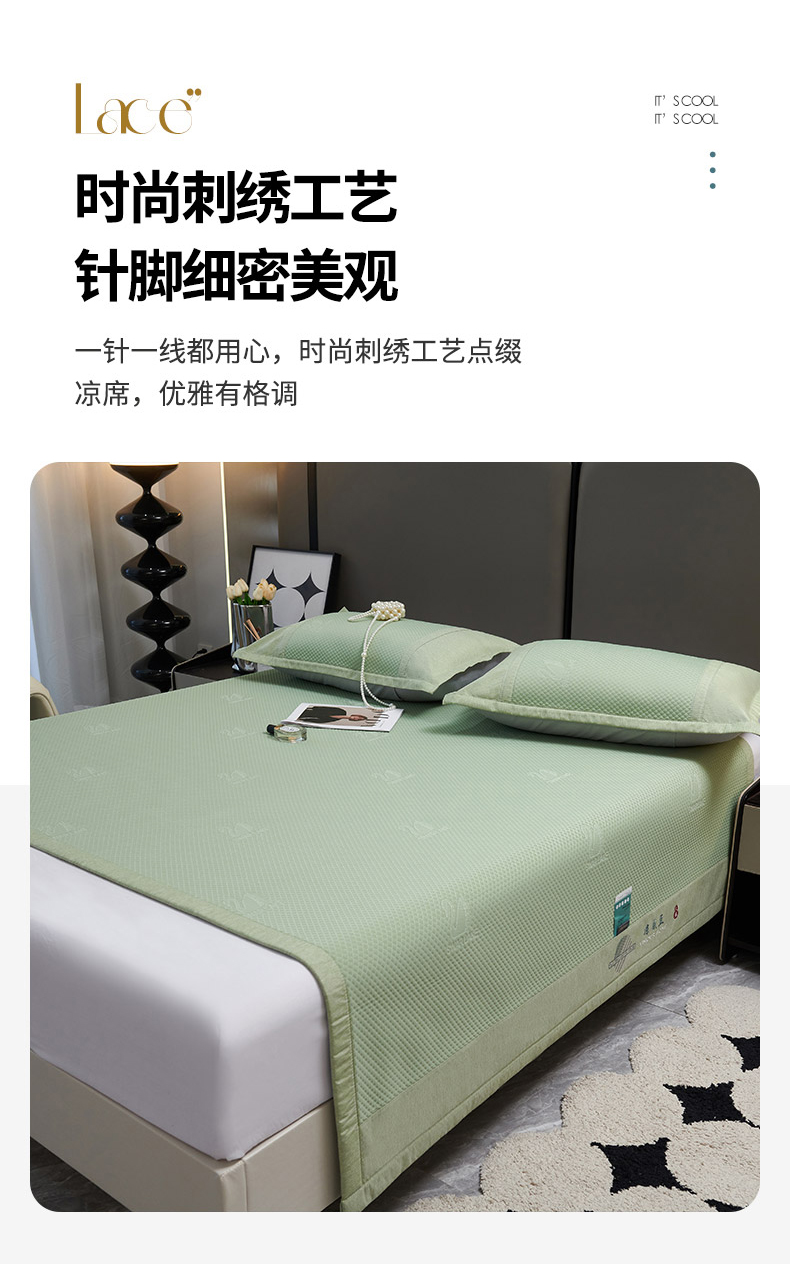 青雅席业 2025新款A类母婴级刺绣冰豆豆凉席 天鹅湖-绿
