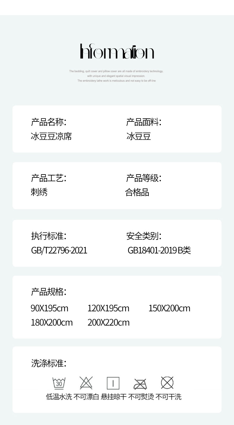 商品名称:青雅席业 2025新款A类母婴级刺绣冰豆豆凉席 天鹅湖-绿