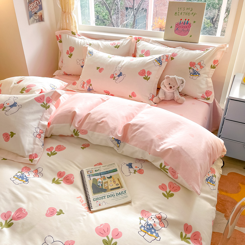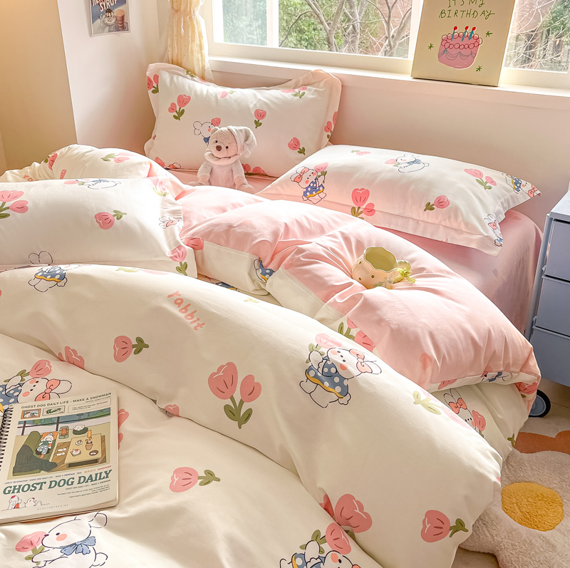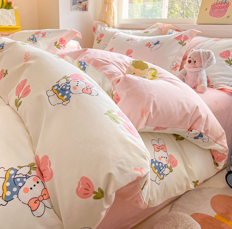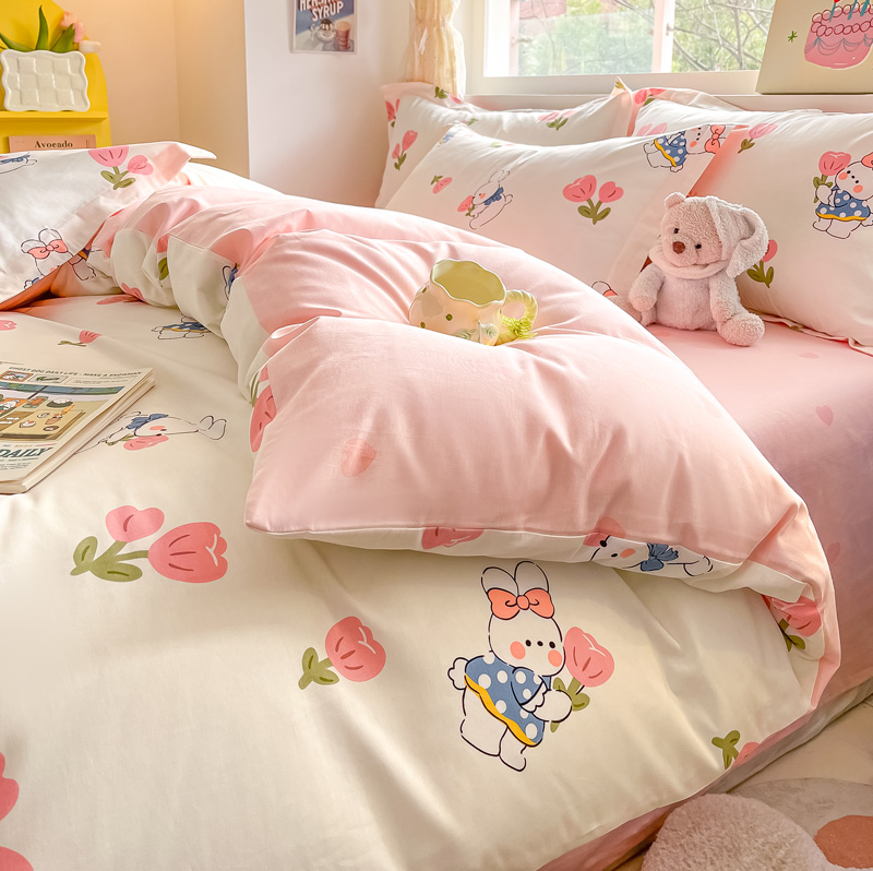 涵宸家纺 2024新款全棉小清新印花单品套件--单被套 花丛兔