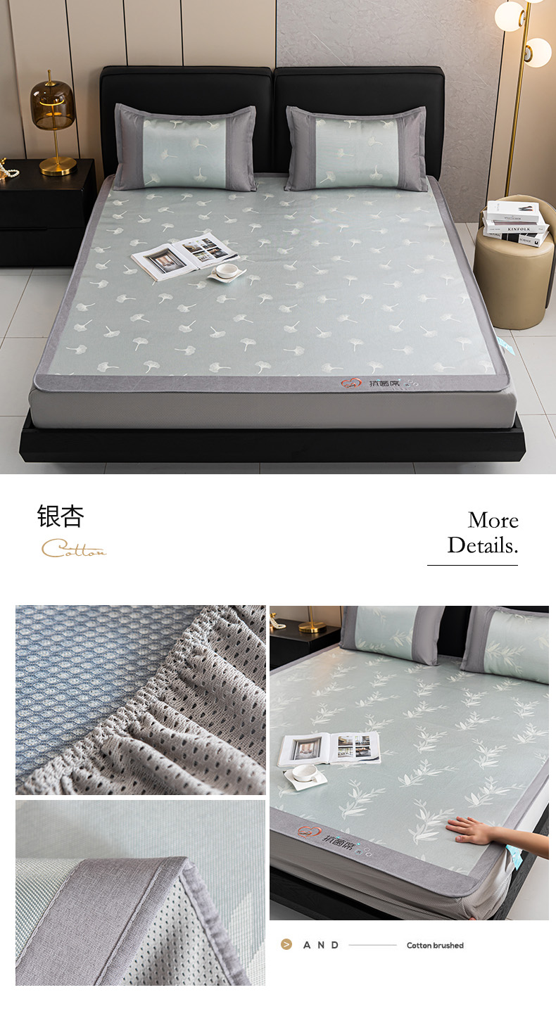 商品名称:爱宝被业 2025新款法式冰丝提花刺绣凉席 银杏 床笠款