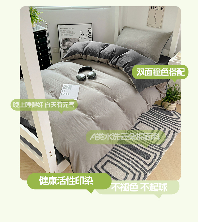 当前位置: 91家纺网 > 商品网购 > 床品套件 > 四件套 > 水洗棉四件套 > 卡斯诺家纺馆 2025新款纯色双拼水洗棉三件套(下载文件包含买家秀) 浅灰深灰