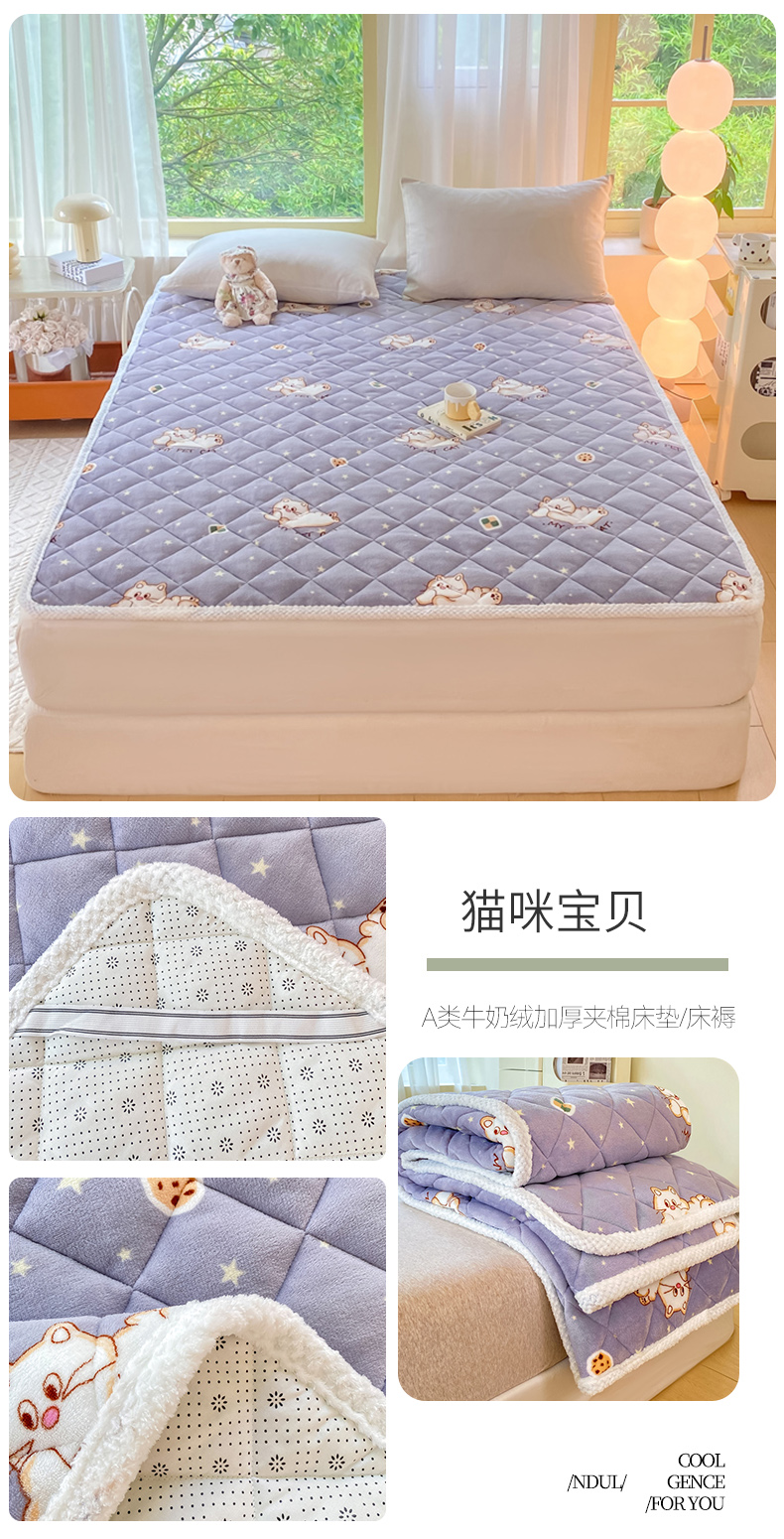 商品名称:正邦家纺 2024新款牛奶绒床垫小清新加厚床褥保暖宽包边可机洗床护垫床褥 猫咪宝贝