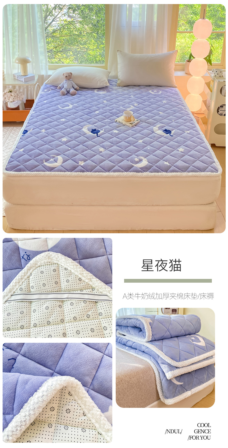 商品名称:正邦家纺 2024新款牛奶绒床垫小清新加厚床褥保暖宽包边可机洗床护垫床褥 星夜猫