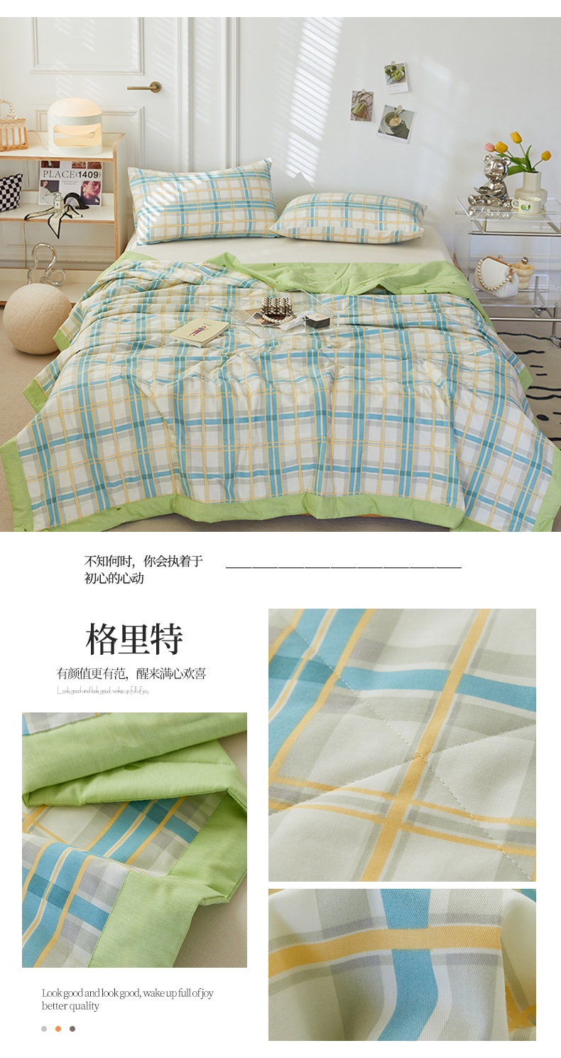 (总)一条棉被 2024新款全棉色织水洗棉大豆夏被四件套系列—AB格子款,爱拉黄,北欧(红咖),印象(灰),素雅桔,印象(兰),云彩绿,洛克蓝,摩尔绿,寻梦灰
