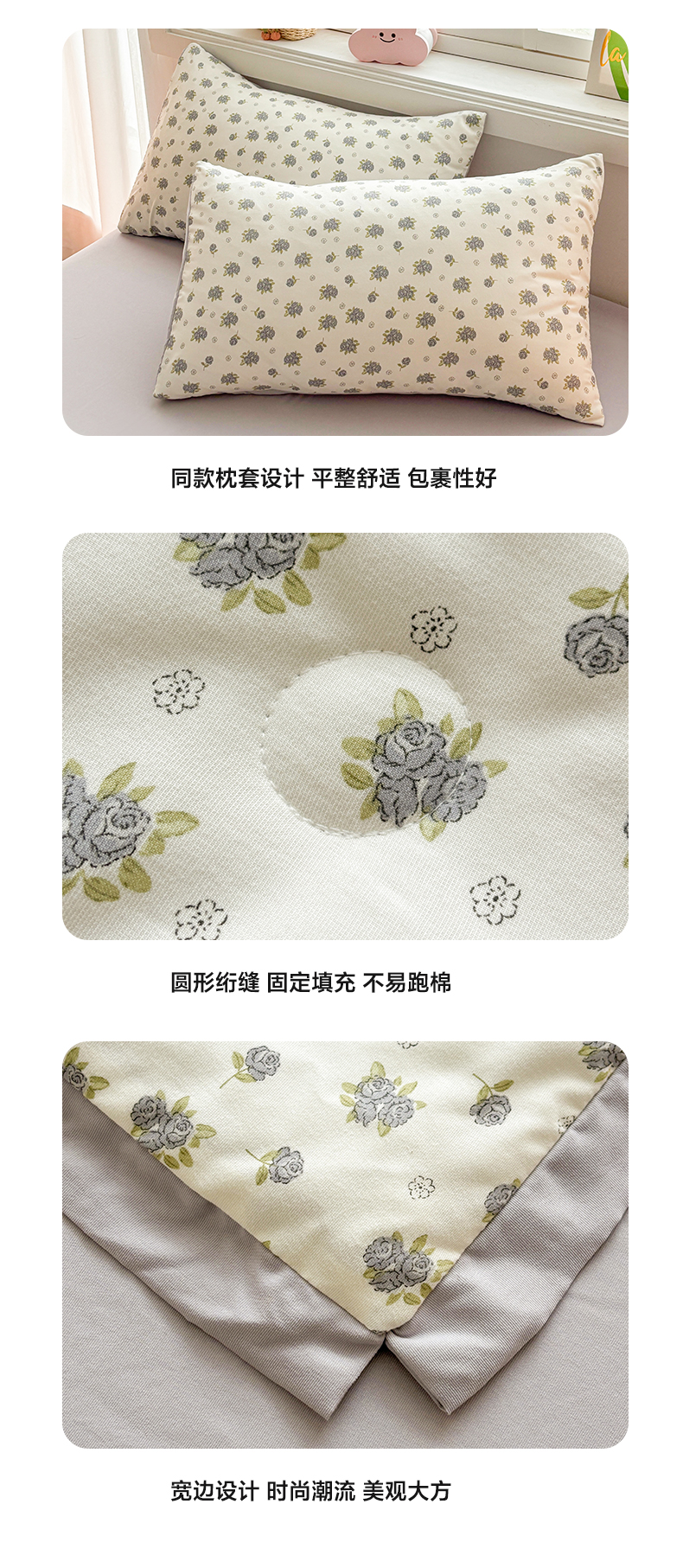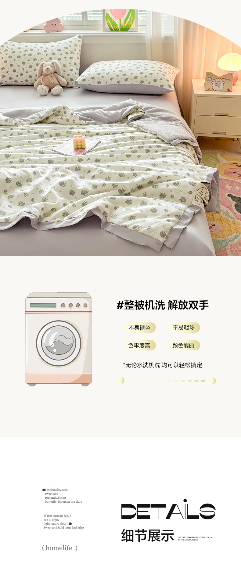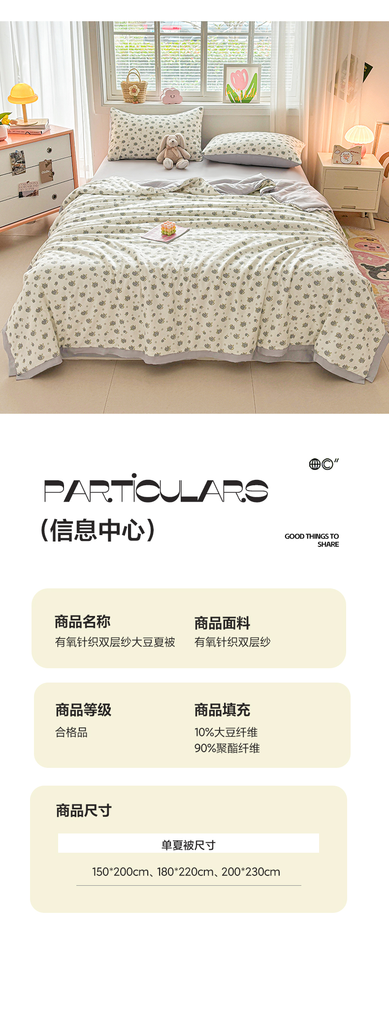 当前位置: 91家纺网 > 商品网购 > 床品套件 > 四件套 > 夏被四件套 > 金喜 2025新款小清新风格有氧针织双层纱大豆被夏被四件套 清欢