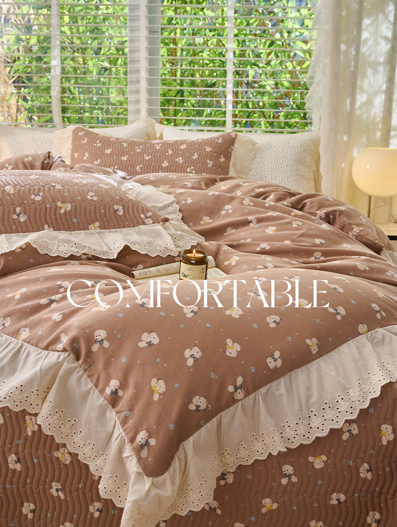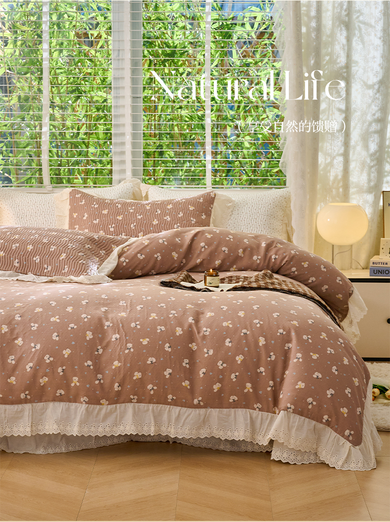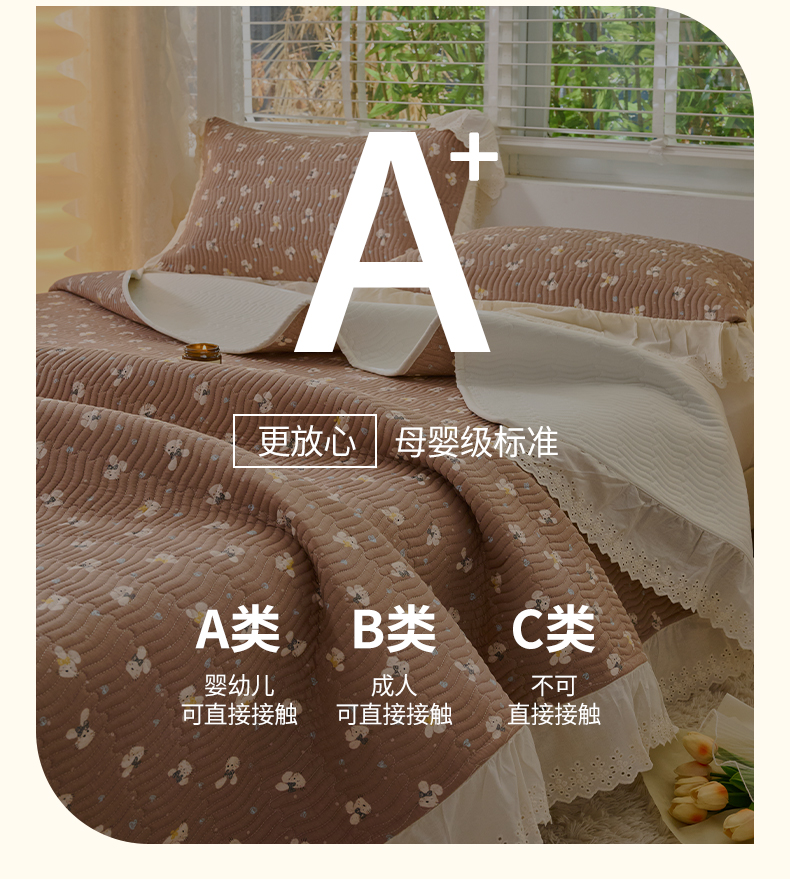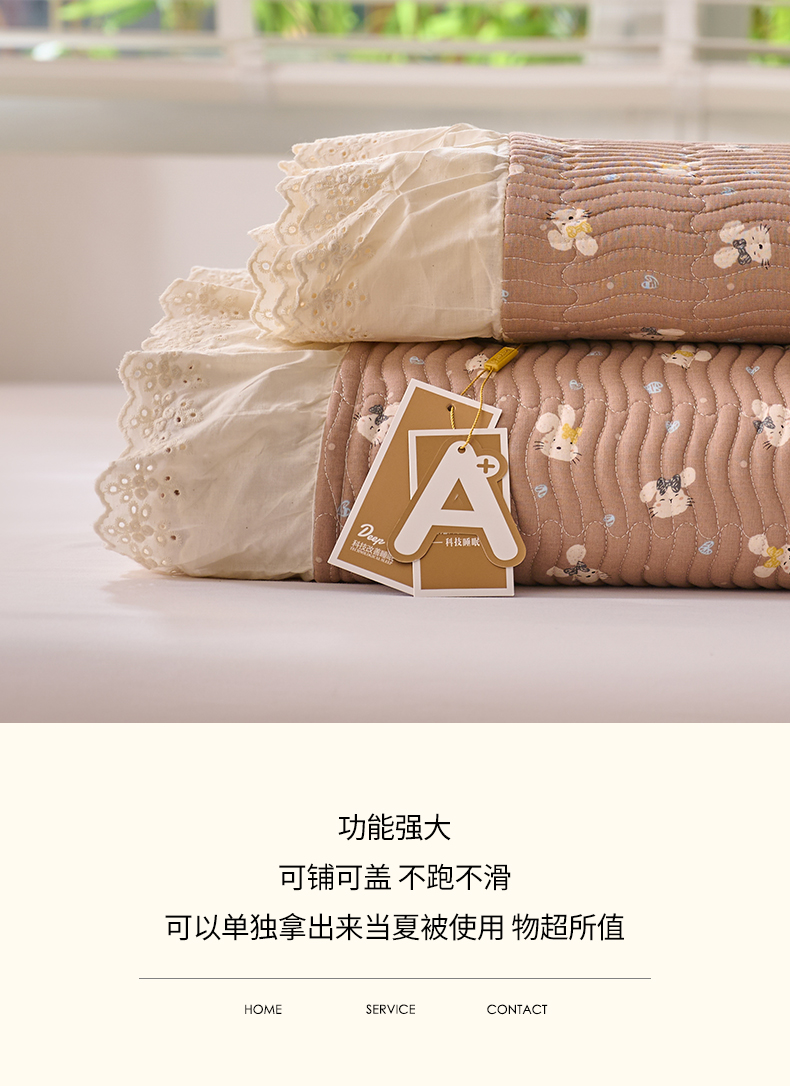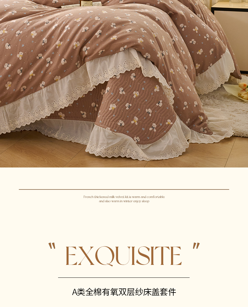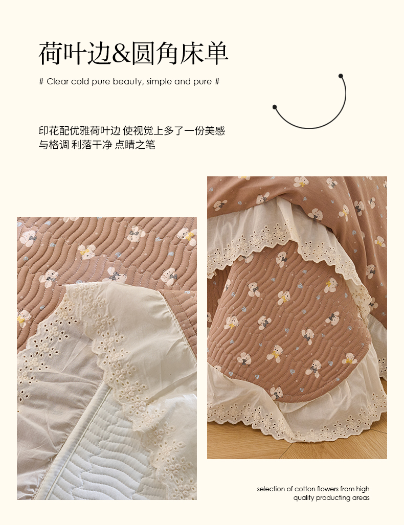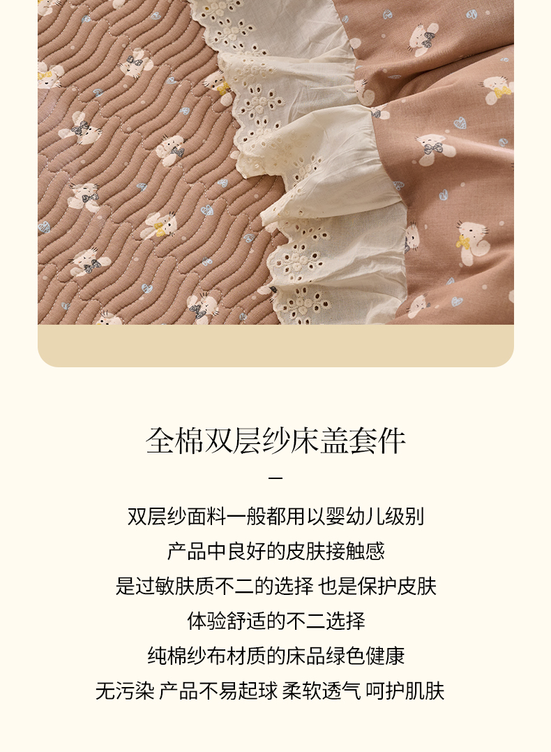 • 91家纺网 家纺一手货源 找家纺 X猫先生 2025新款法式全棉双层纱床盖套件夹棉床单三四件套(A类母婴级) 菲乐兔宝