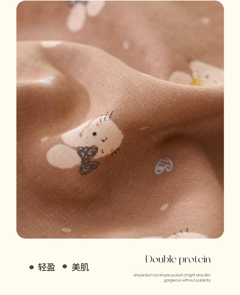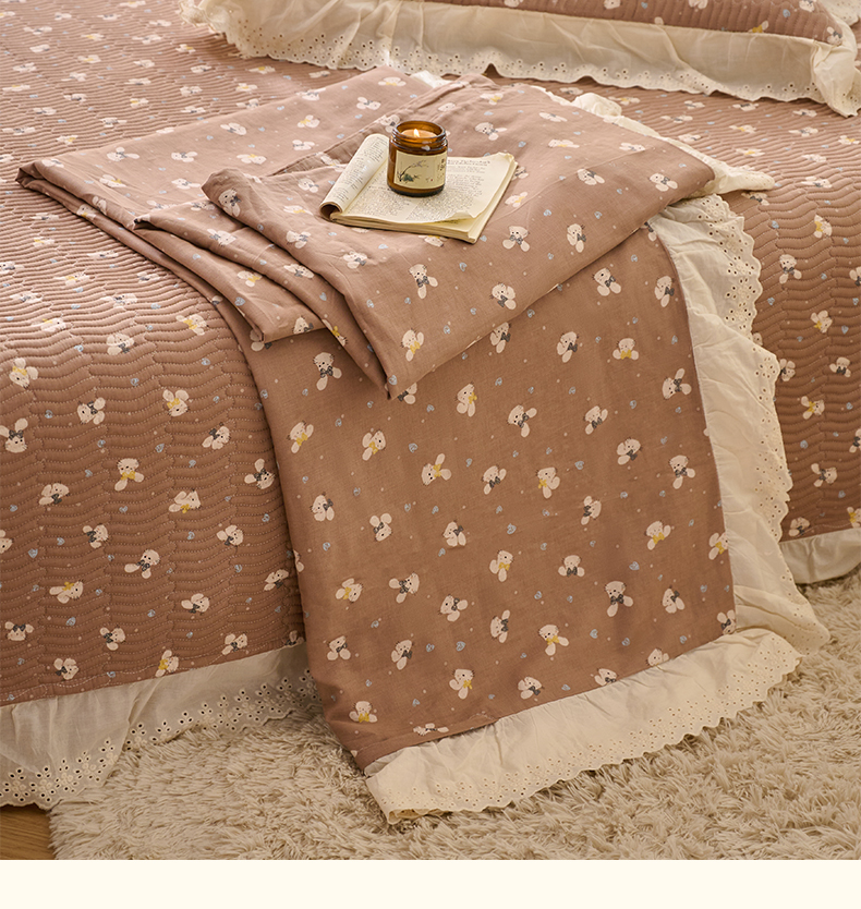 X猫先生 2025新款法式全棉双层纱床盖套件夹棉床单三四件套(A类母婴级) 菲乐兔宝